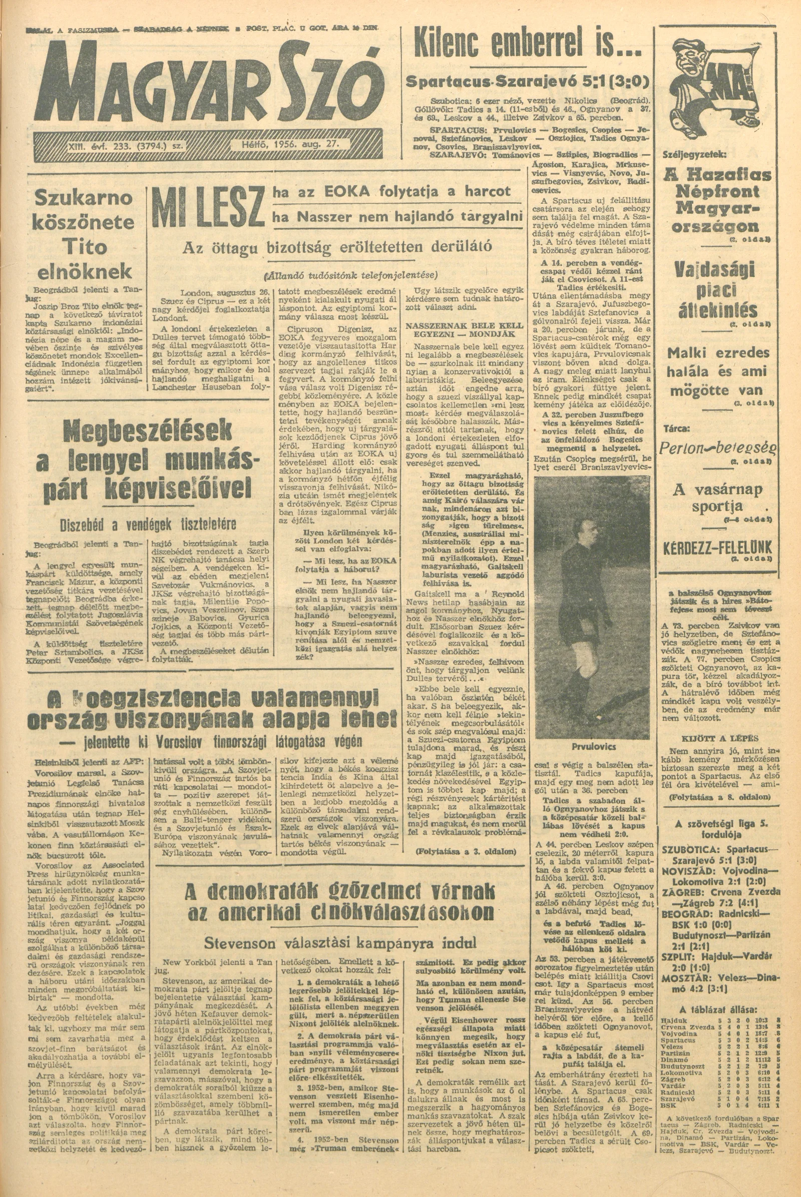 Magyar Szó, 13. évf. 1956. augusztus 27. 233. sz. 1–10. oldal