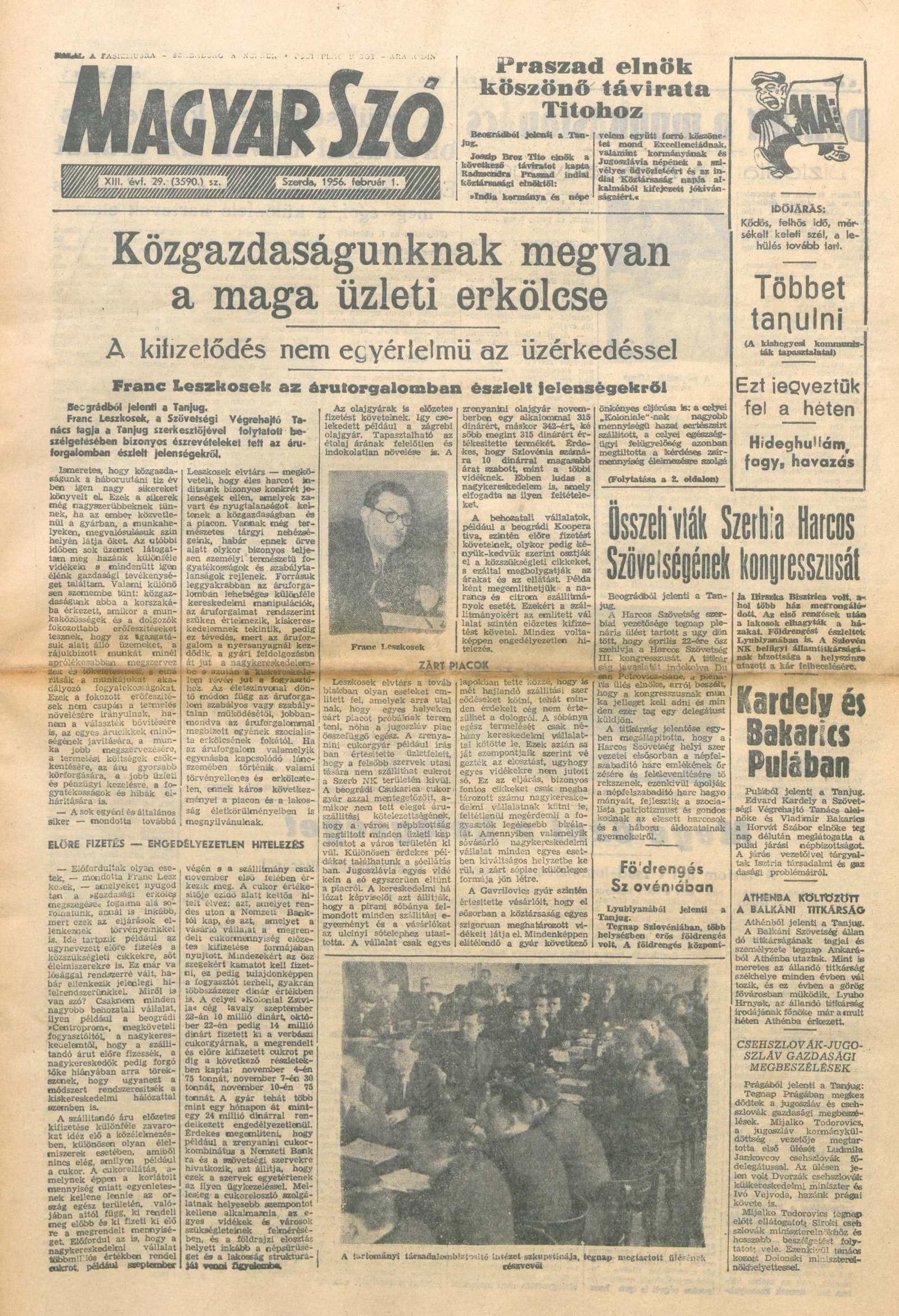 Magyar Szó, 13. évf. 1956. február 1. 29. sz. 1–8. oldal