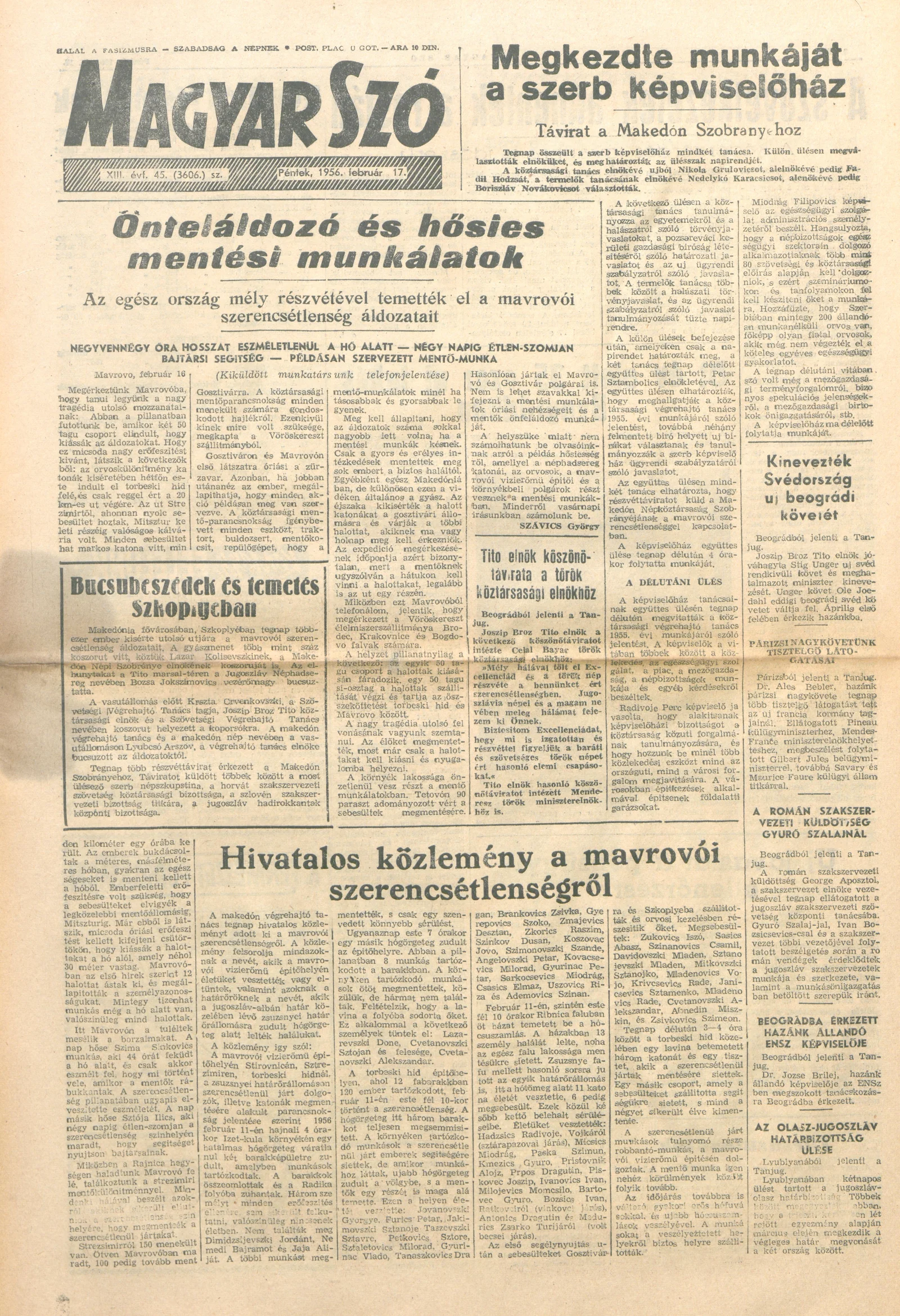 Magyar Szó, 13. évf. 1956. február 17. 45. sz. 1–8. oldal
