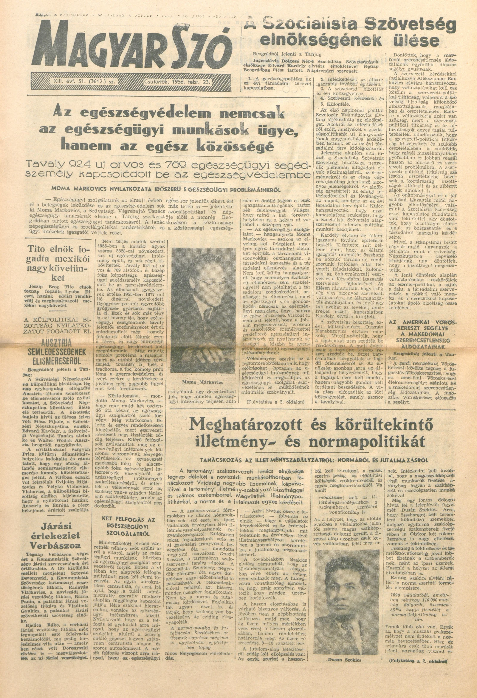 Magyar Szó, 13. évf. 1956. február 23. 51. sz. 1–12. oldal
