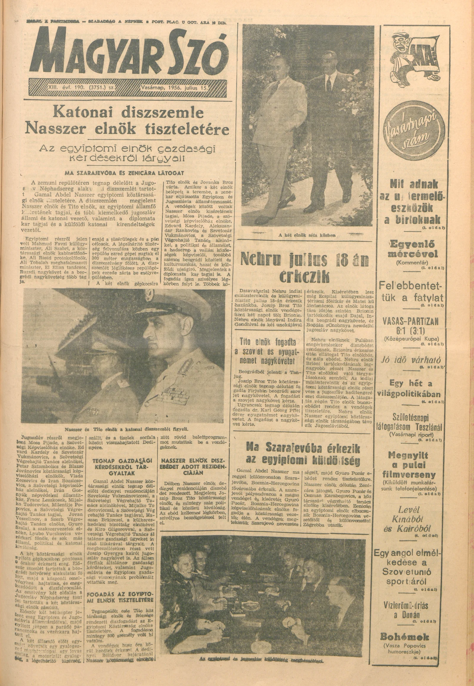 Magyar Szó, 13. évf. 1956. július 15. 190. sz. 1–20. oldal