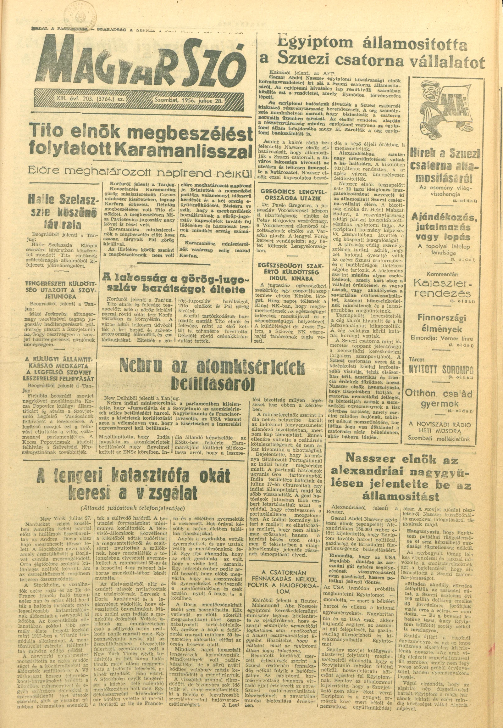 Magyar Szó, 13. évf. 1956. július 28. 203. sz. 1–12. oldal