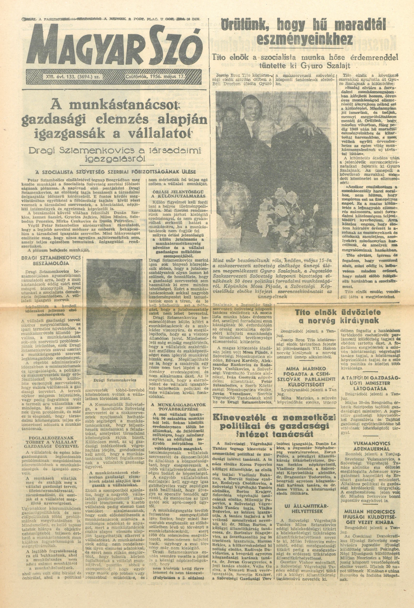 Magyar Szó, 13. évf. 1956. május 17. 133. sz. 1–8. oldal