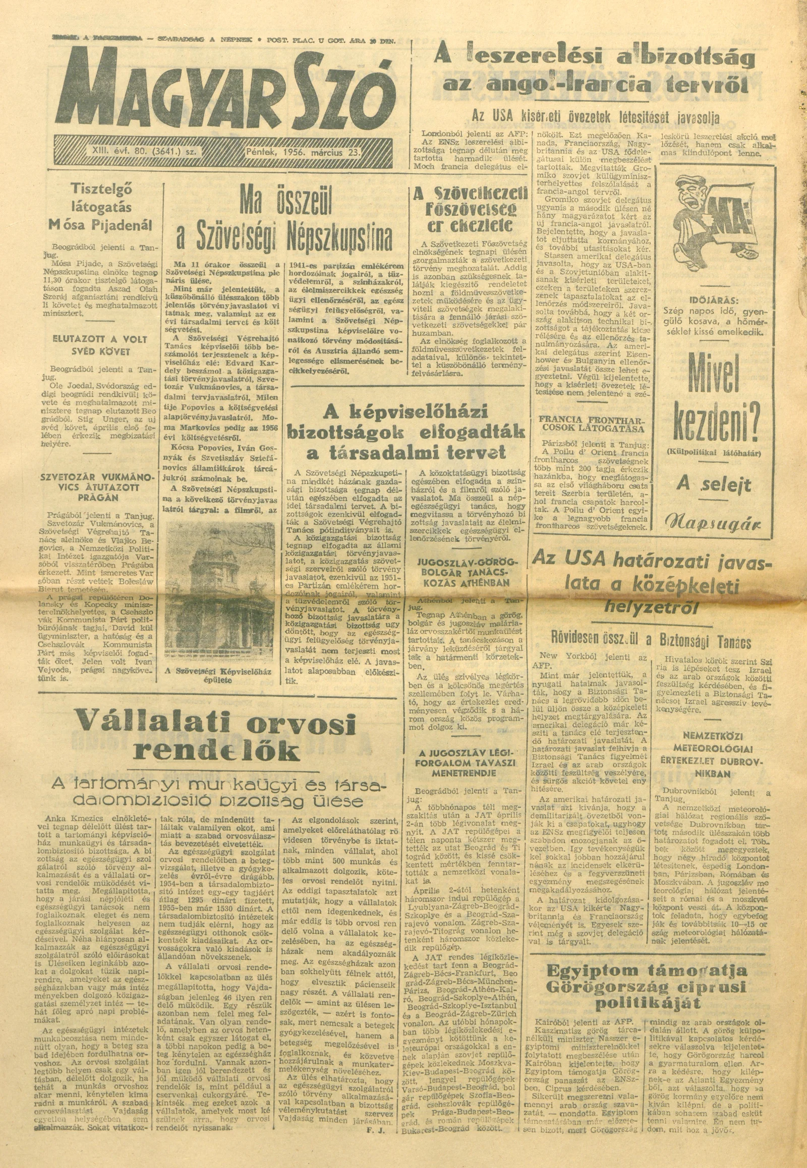 Magyar Szó, 13. évf. 1956. március 23. 80. sz. 1–8. oldal