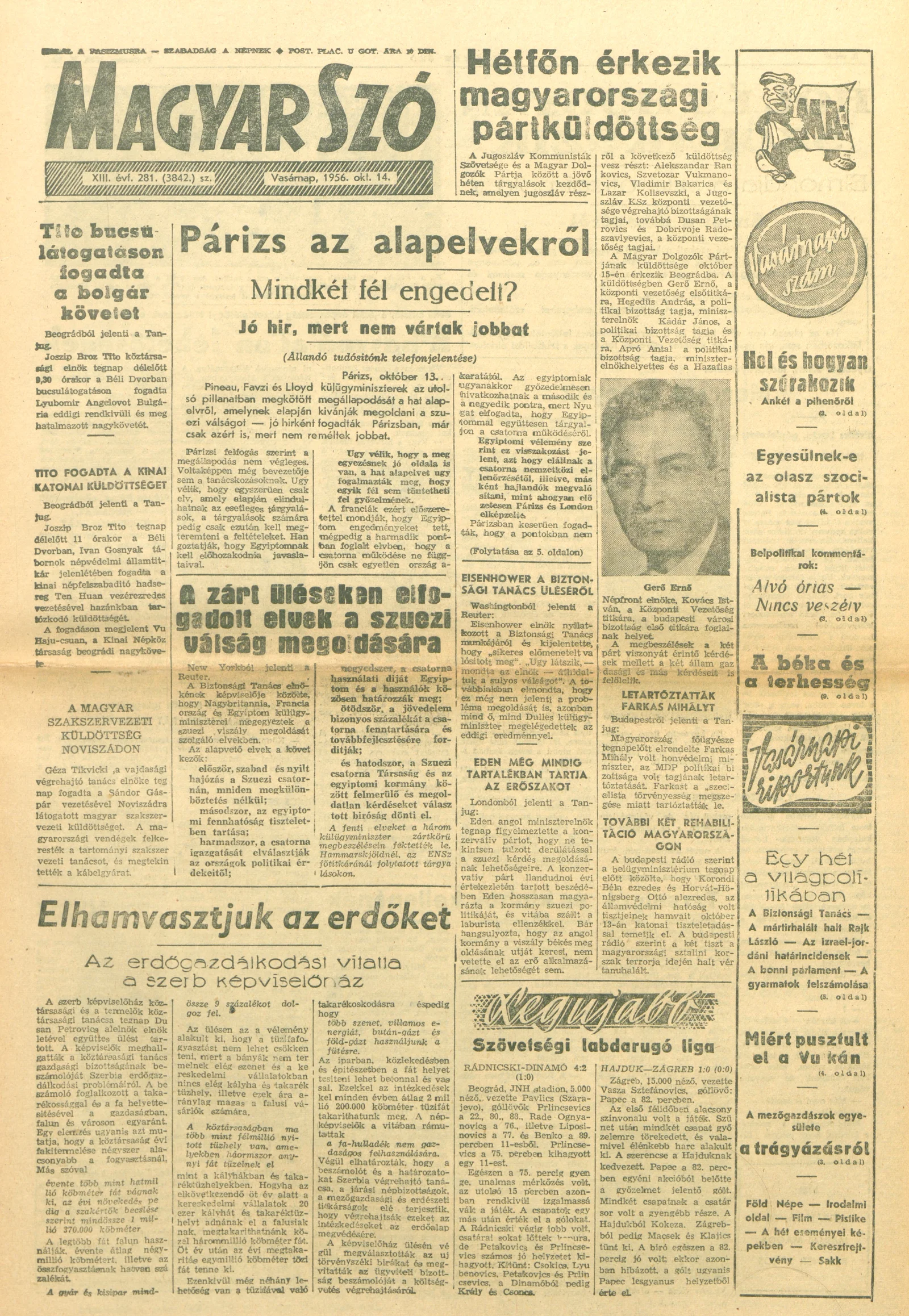 Magyar Szó, 13. évf. 1956. október 14. 281. sz. 1–20. oldal
