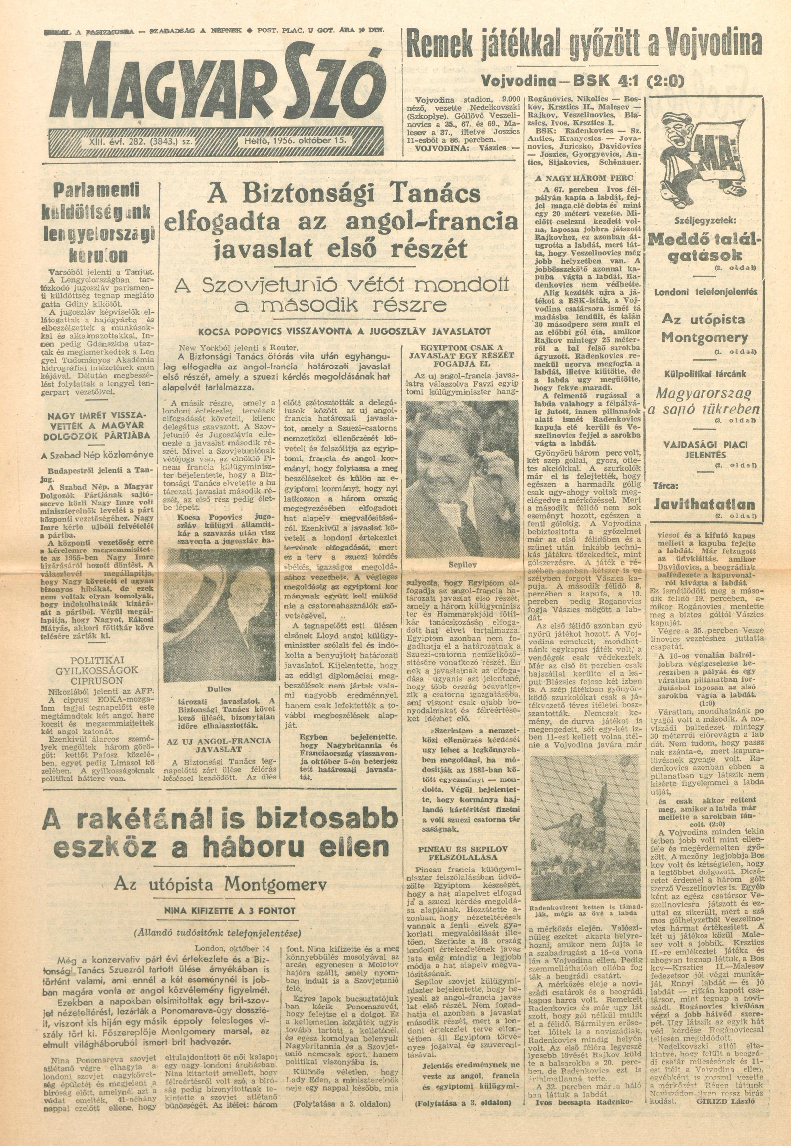 Magyar Szó, 13. évf. 1956. október 15. 282. sz. 1–10. oldal