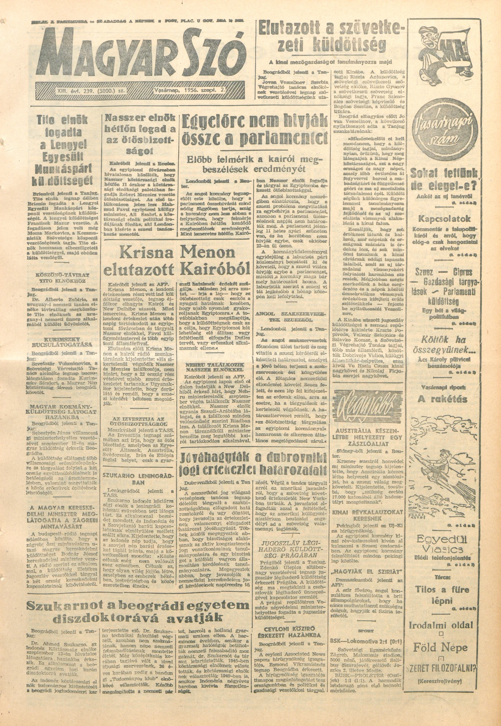 Magyar Szó, 13. évf. 1956. szeptember 2. 239. sz. 1–20. oldal