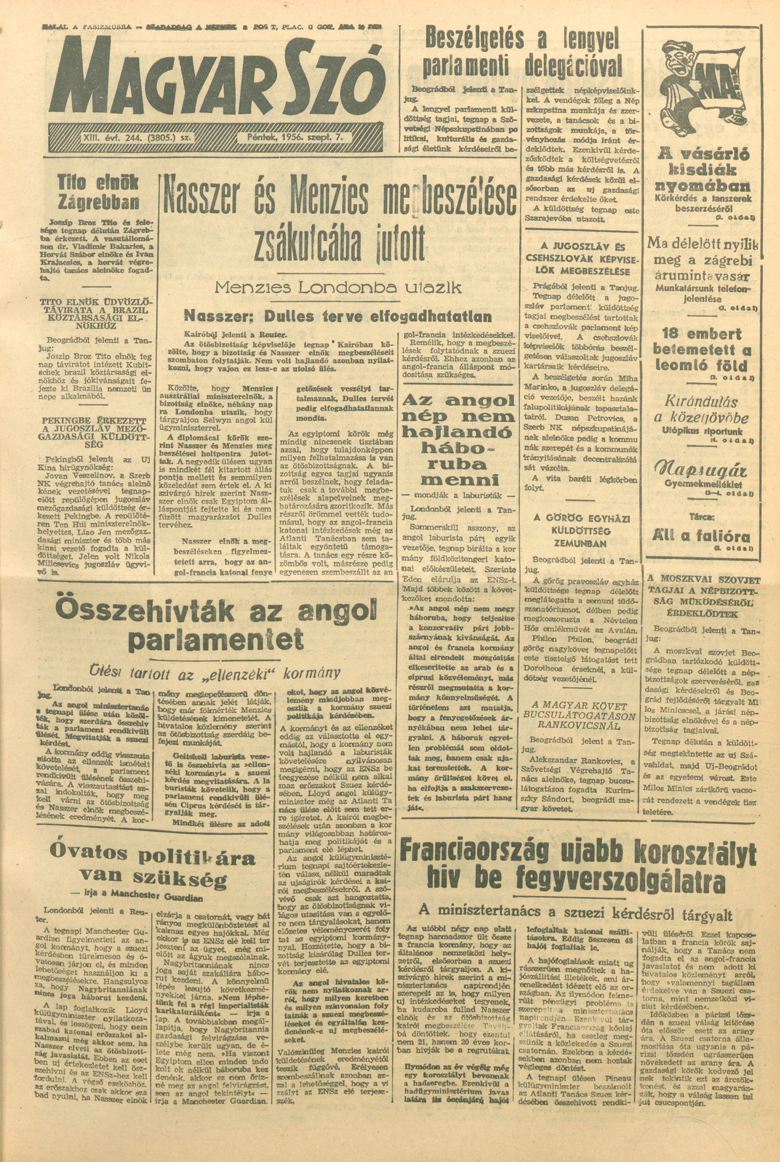 Magyar Szó, 13. évf. 1956. szeptember 7. 244. sz. 1–10. oldal