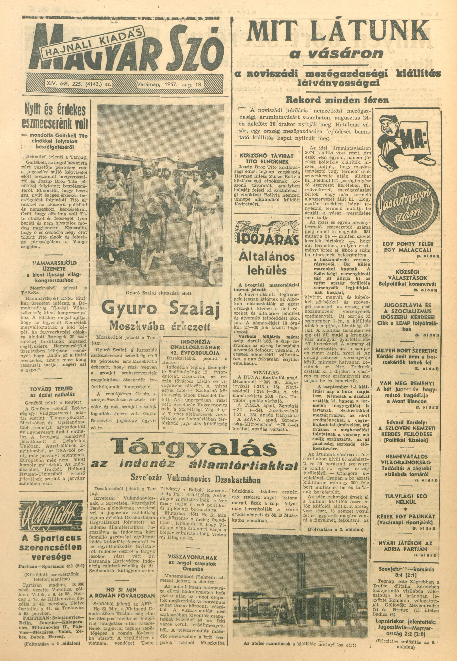 Magyar Szó, 14. évf. 1957. augusztus 18. 225. sz. 1–18. oldal