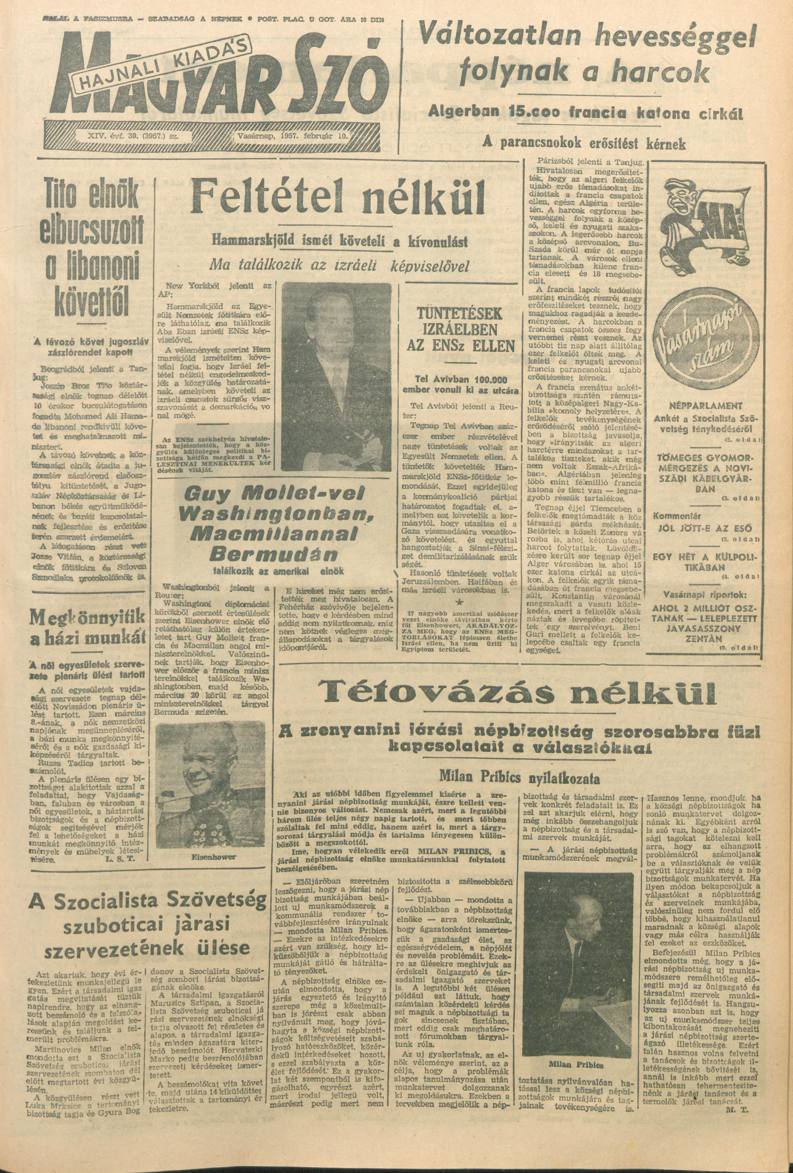 Magyar Szó, 14. évf. 1957. február 10. 39. sz. 1–22. oldal