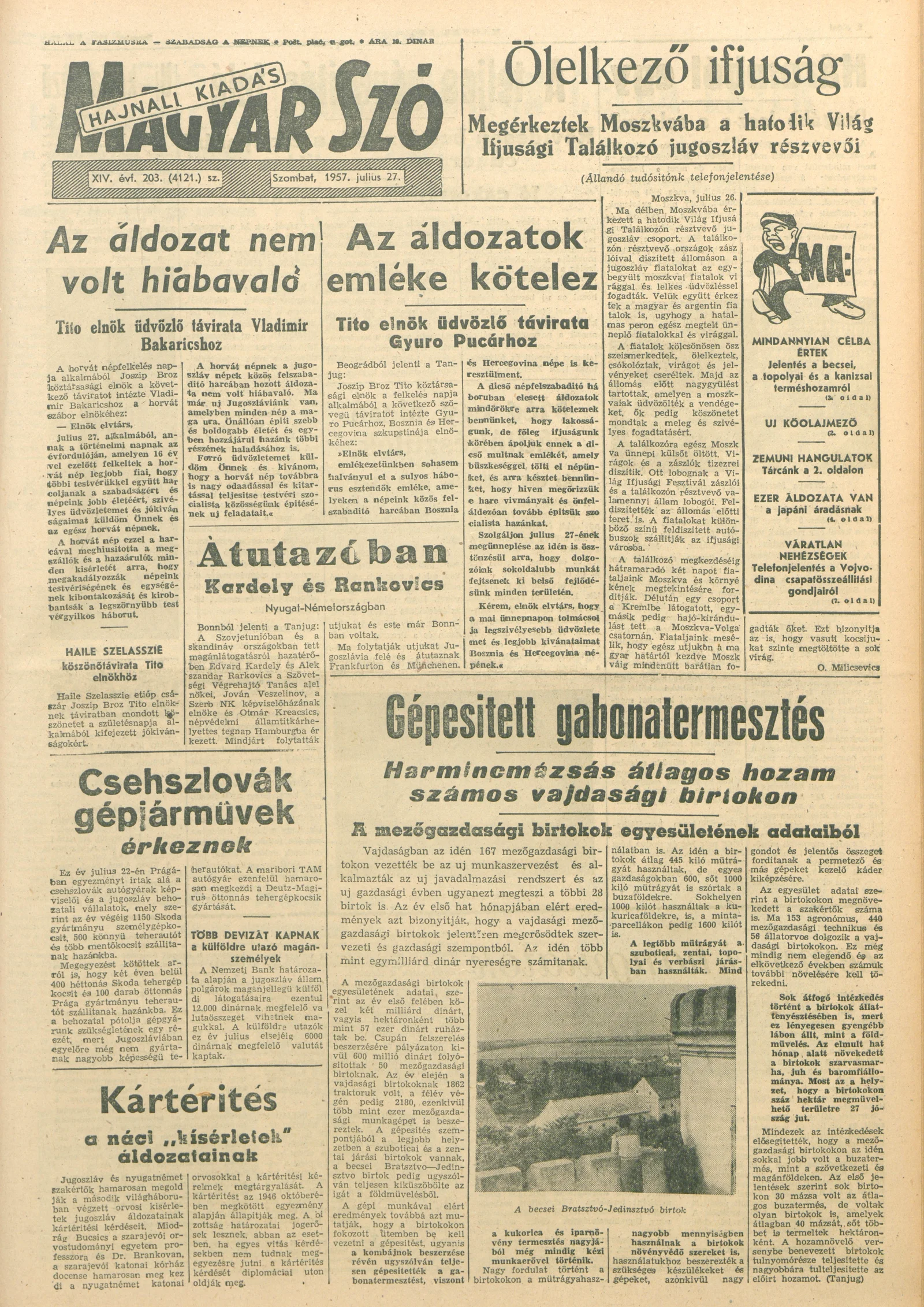 Magyar Szó, 14. évf. 1957. július 27. 203. sz. 1–14. oldal
