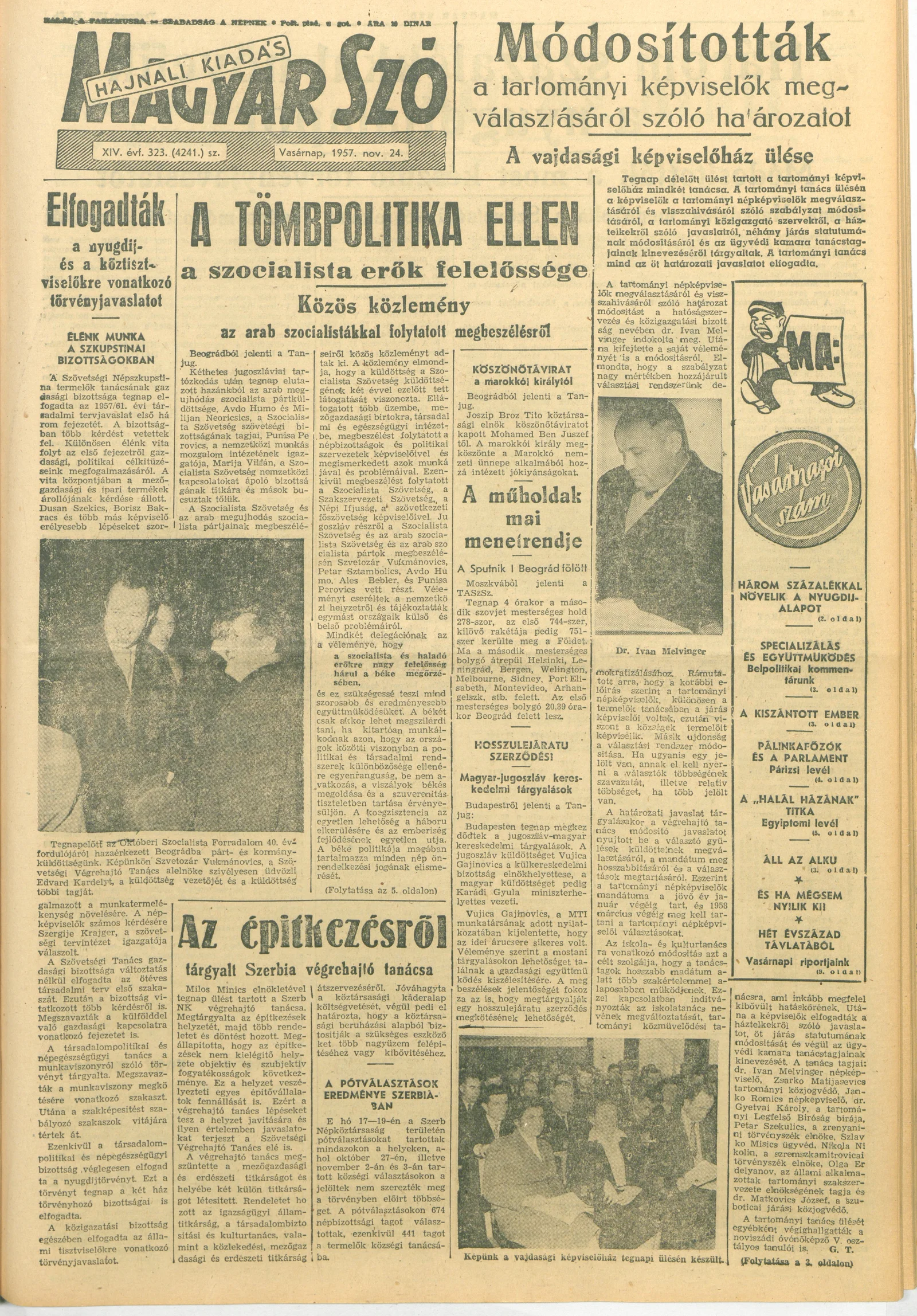Magyar Szó, 14. évf. 1957. november 24. 323. sz. 1–20. oldal