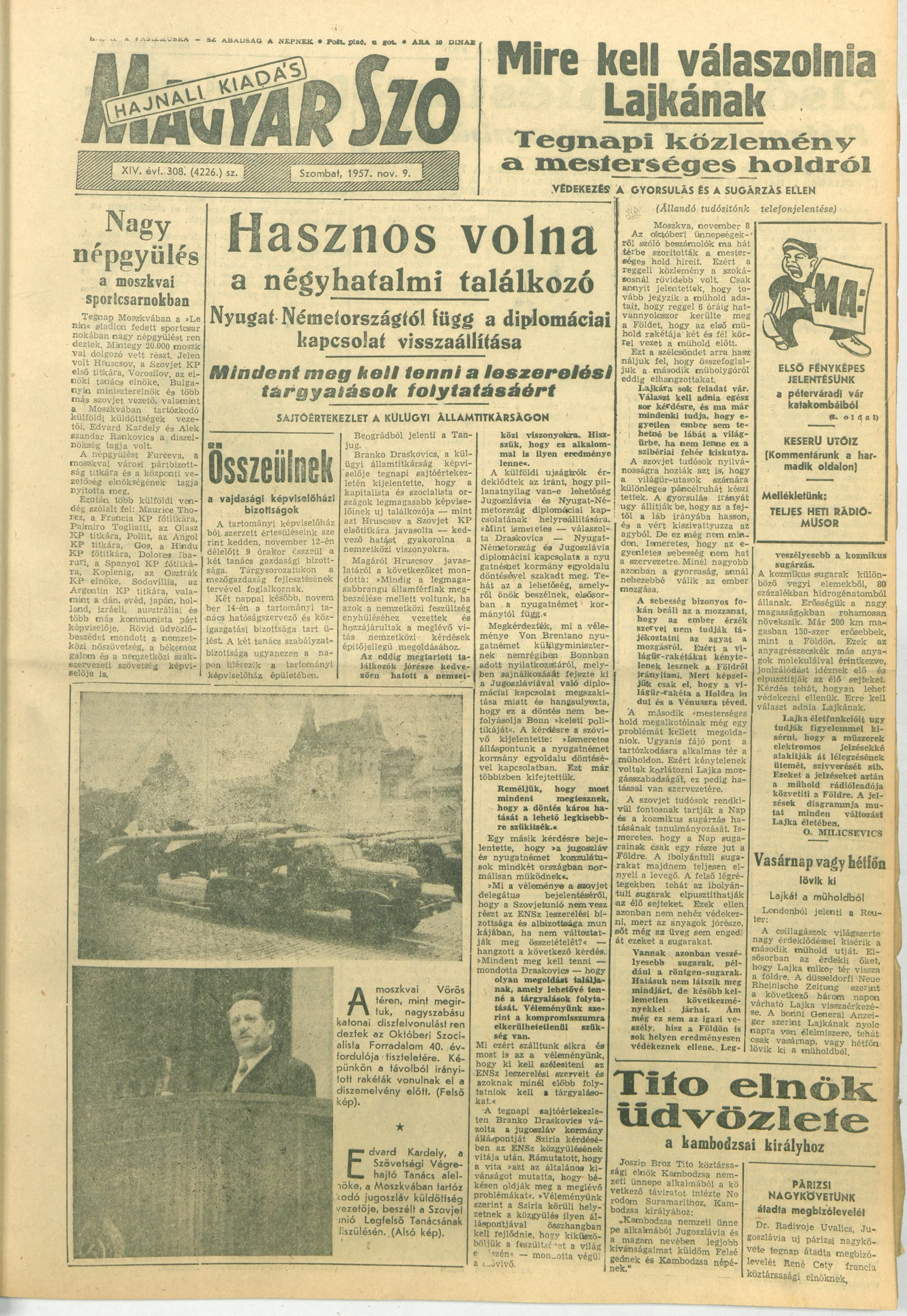Magyar Szó, 14. évf. 1957. november 9. 308. sz. 1–18. oldal