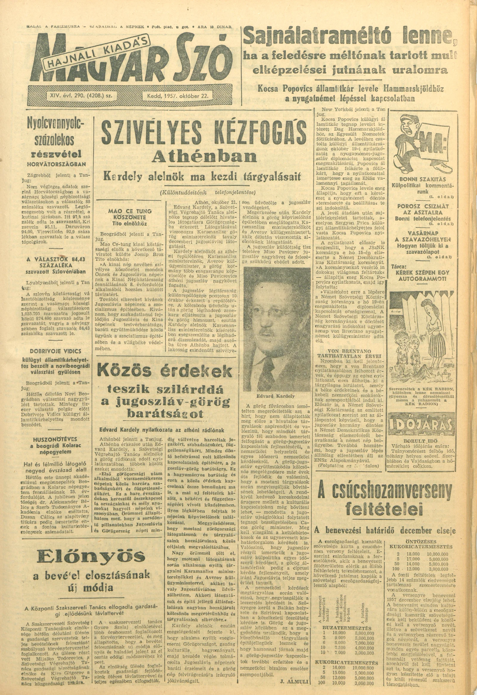 Magyar Szó, 14. évf. 1957. október 22. 290. sz. 1–16. oldal