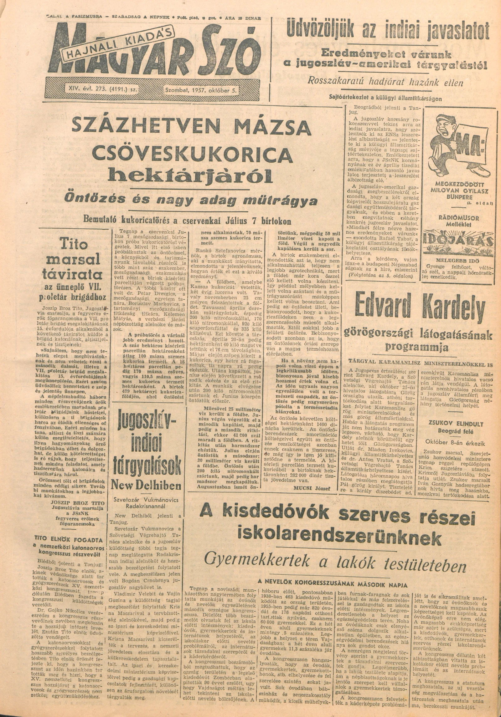 Magyar Szó, 14. évf. 1957. október 5. 273. sz. 1–16. oldal