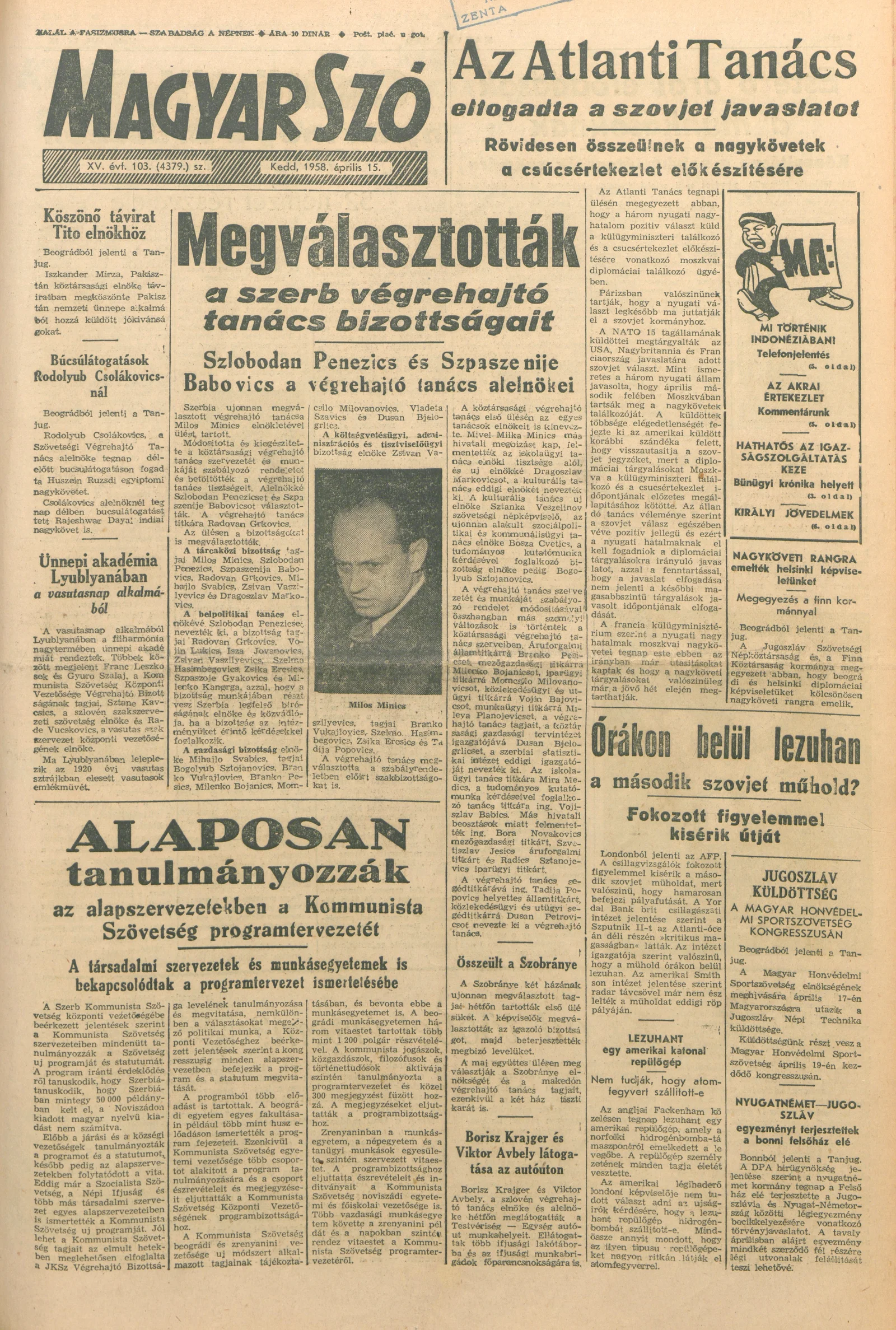 Magyar Szó, 15. évf. 1958. április 15. 103. sz. 1–10. oldal
