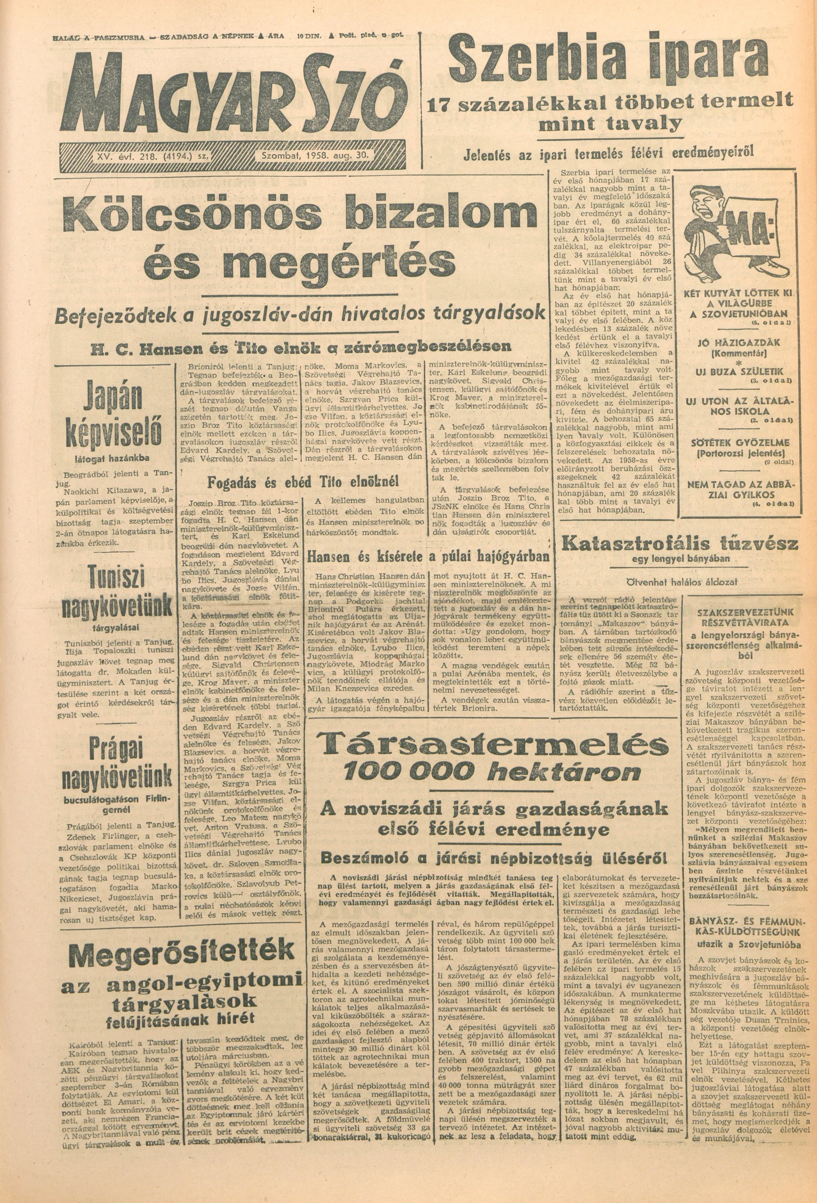 Magyar Szó, 15. évf. 1958. augusztus 30. 218. sz. 1–18. oldal