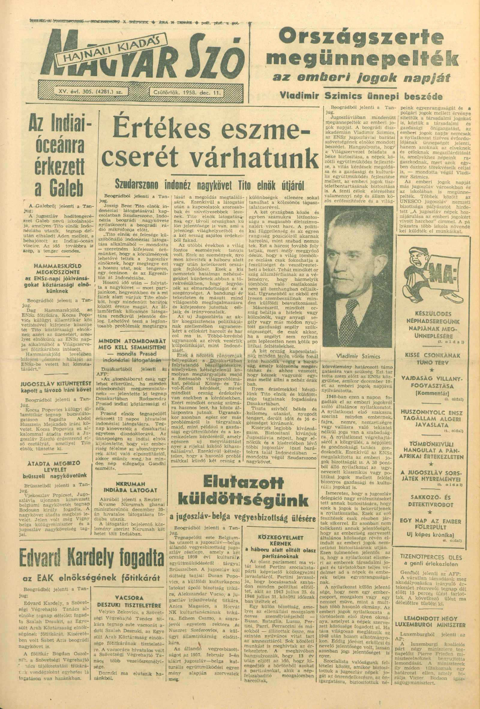 Magyar Szó, 15. évf. 1958. december 11. 305. sz. 1–16. oldal