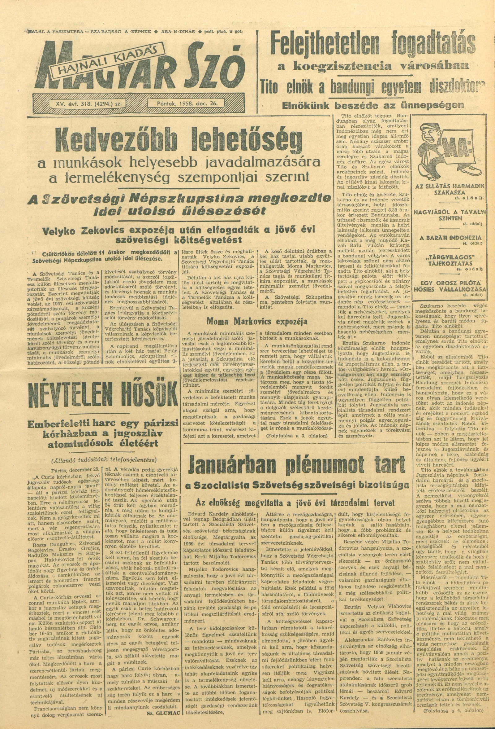 Magyar Szó, 15. évf. 1958. december 26. 318. sz. 1–20. oldal