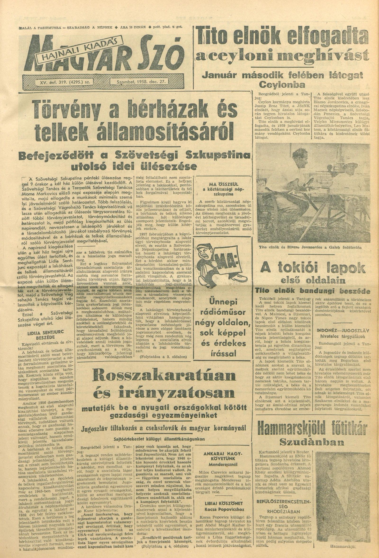 Magyar Szó, 15. évf. 1958. december 27. 319. sz. 1–18. oldal