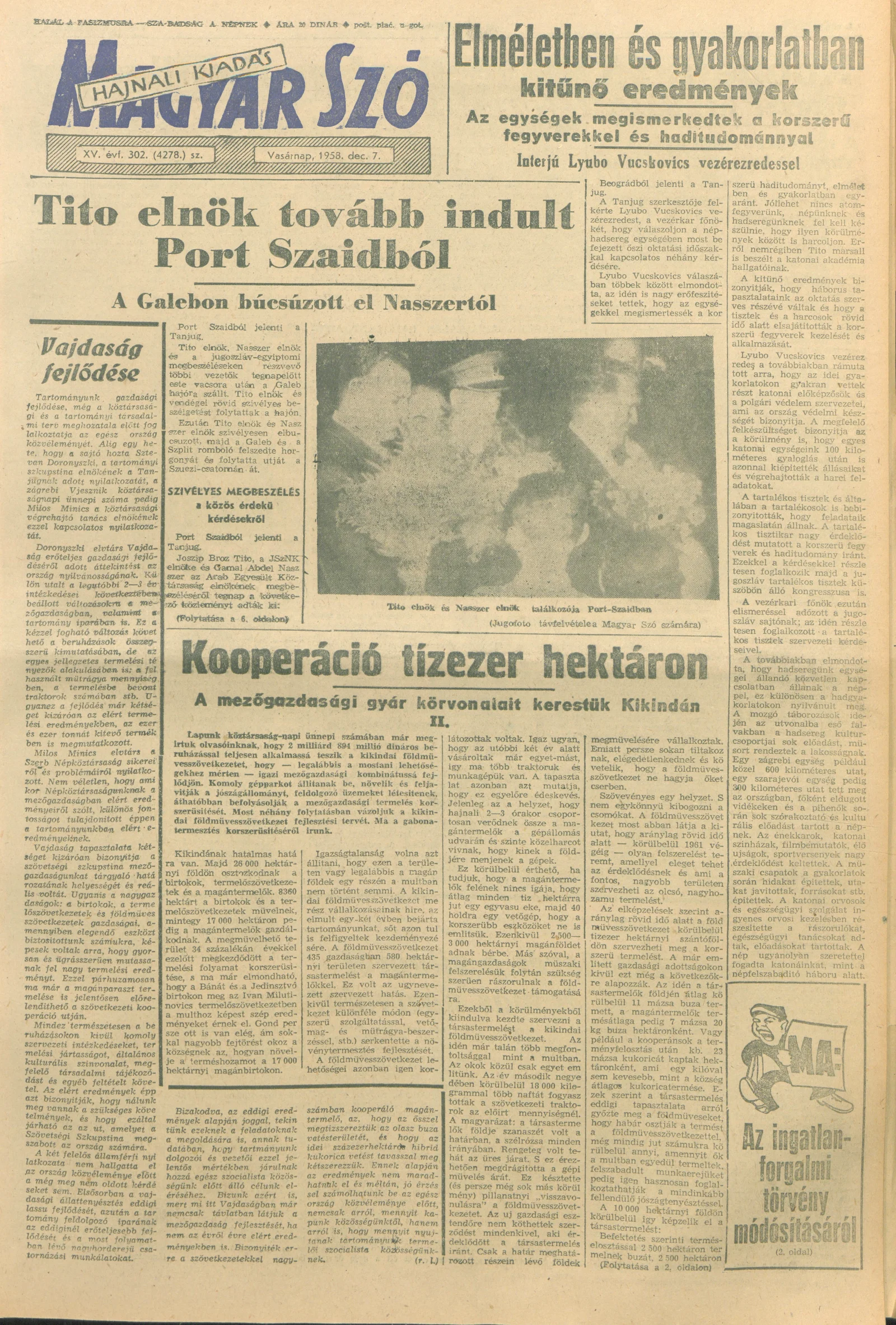 Magyar Szó, 15. évf. 1958. december 7. 302. sz. 1–22. oldal