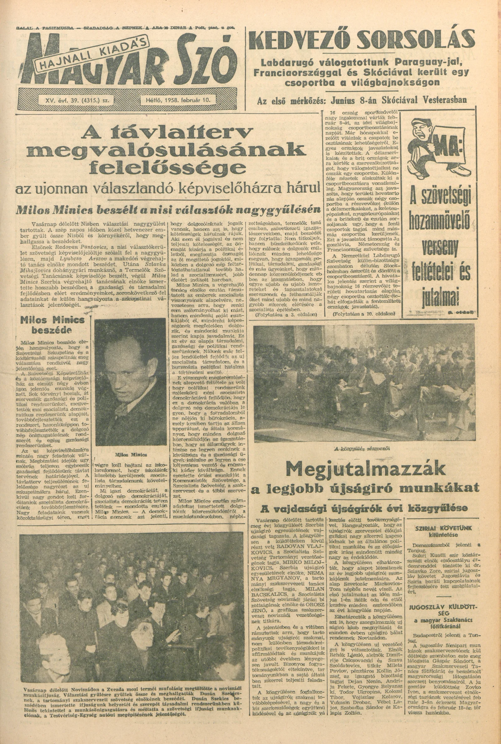 Magyar Szó, 15. évf. 1958. február 10. 39. sz. 1–10. oldal