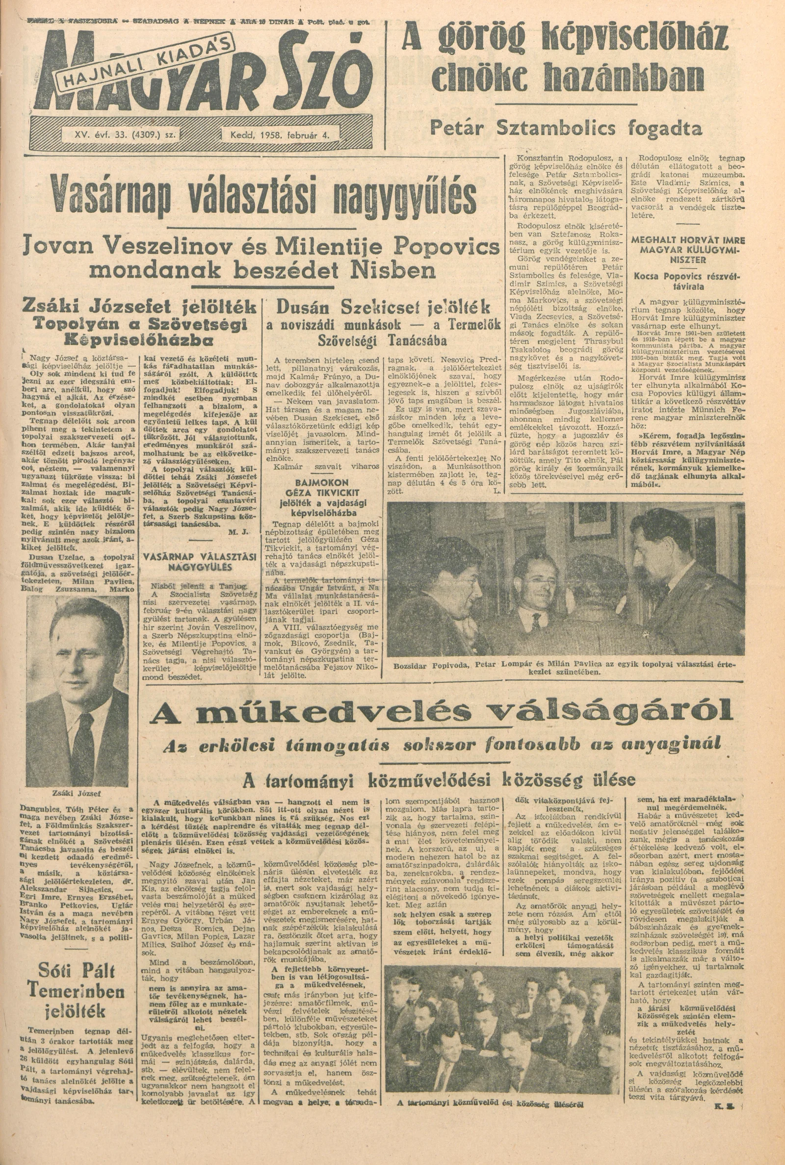 Magyar Szó, 15. évf. 1958. február 4. 33. sz. 1–10. oldal