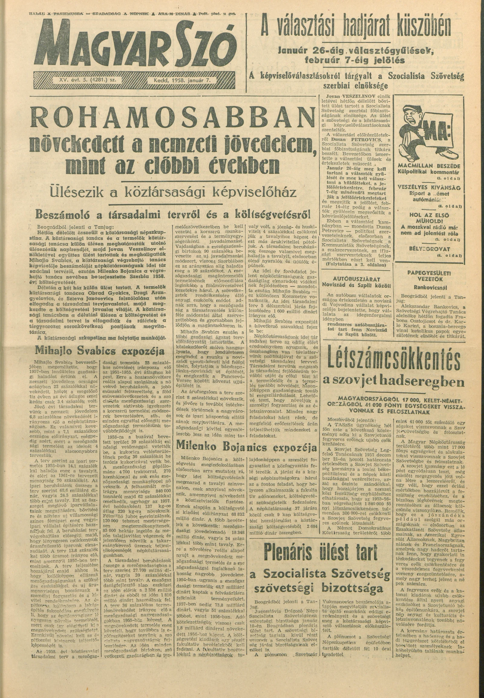 Magyar Szó, 15. évf. 1958. január 7. 5. sz. 1–10. oldal