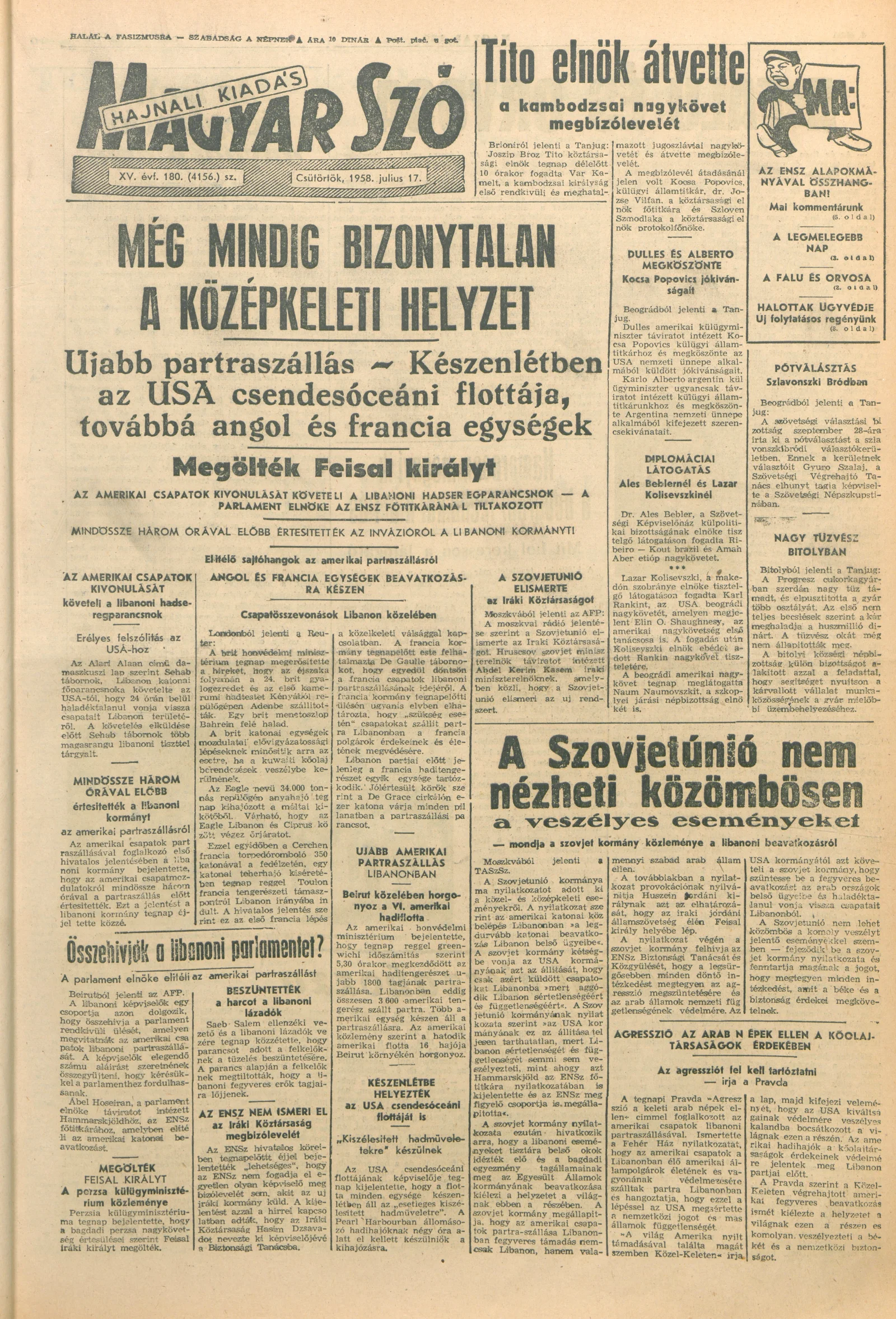 Magyar Szó, 15. évf. 1958. július 17. 180. sz. 1–14. oldal