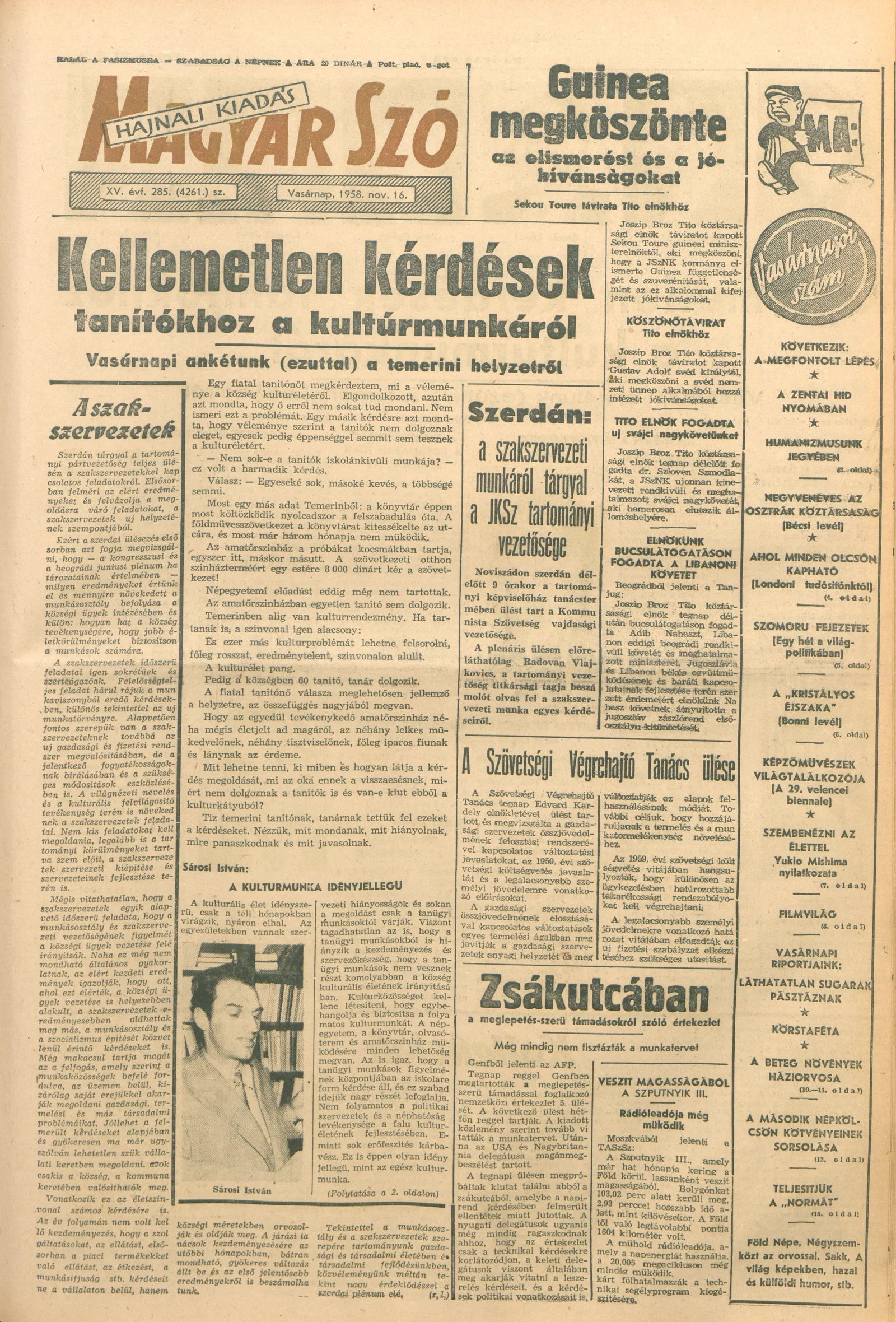 Magyar Szó, 15. évf. 1958. november 16. 285. sz. 1–26. oldal