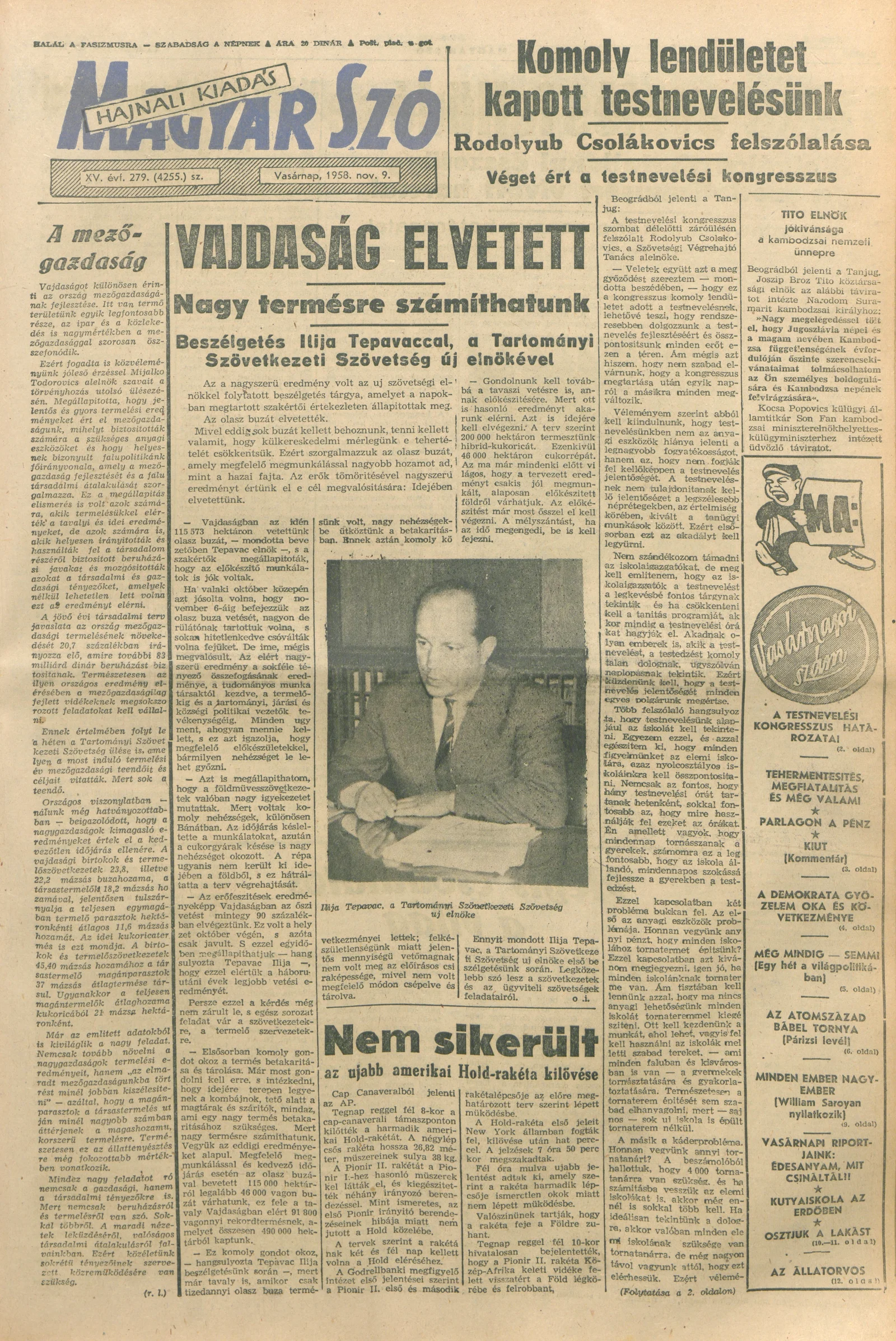 Magyar Szó, 15. évf. 1958. november 9. 279. sz. 1–24. oldal