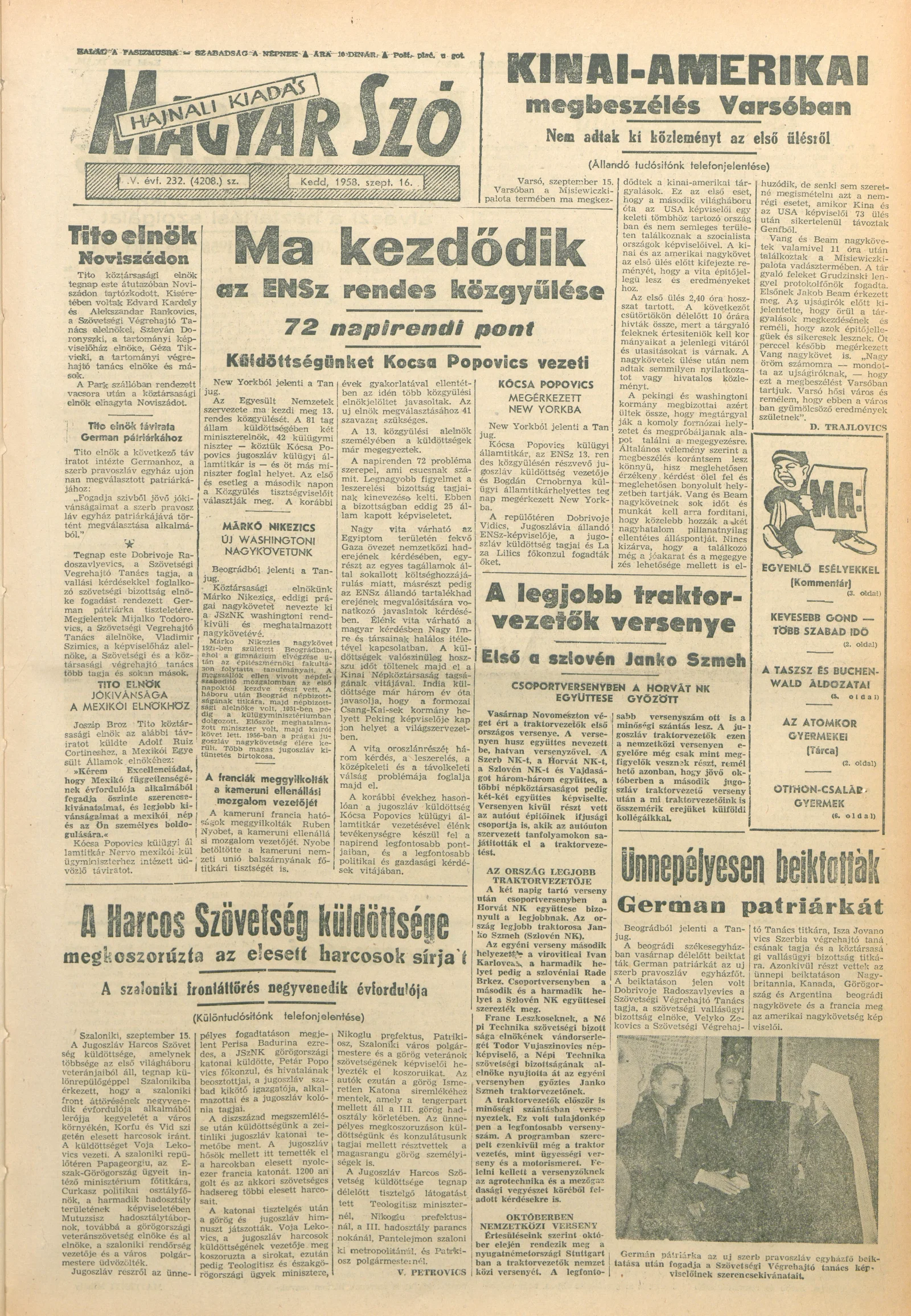 Magyar Szó, 15. évf. 1958. szeptember 16. 232. sz. 1–14. oldal