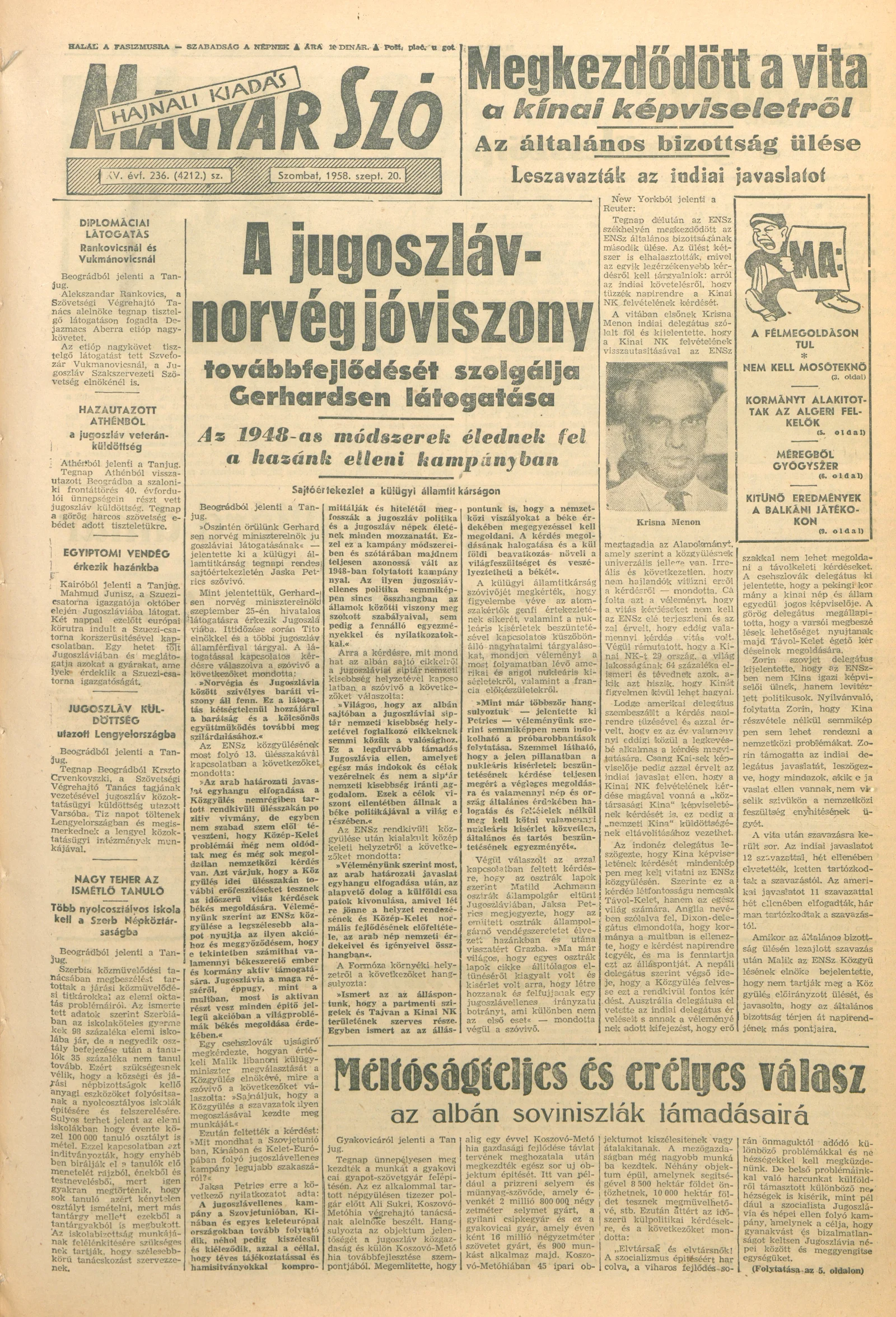 Magyar Szó, 15. évf. 1958. szeptember 20. 236. sz. 1–16. oldal