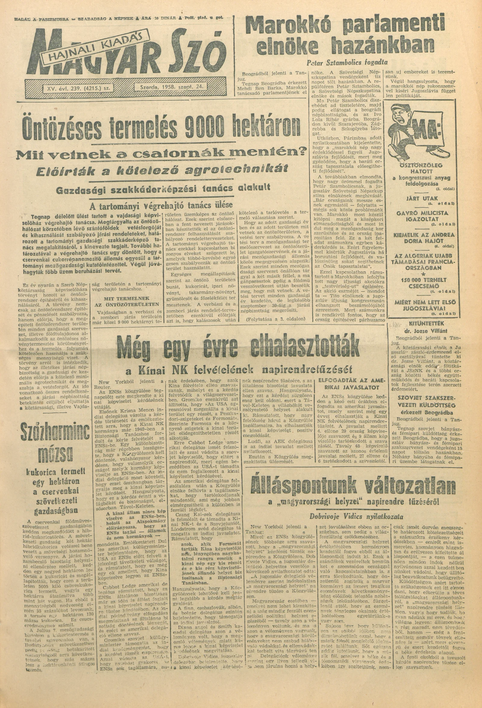 Magyar Szó, 15. évf. 1958. szeptember 24. 239. sz. 1–18. oldal