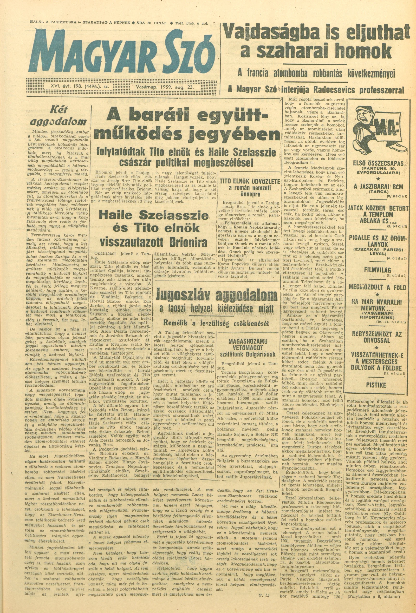 Magyar Szó, 16. évf. 1959. augusztus 23. 198. sz. 1–26. oldal
