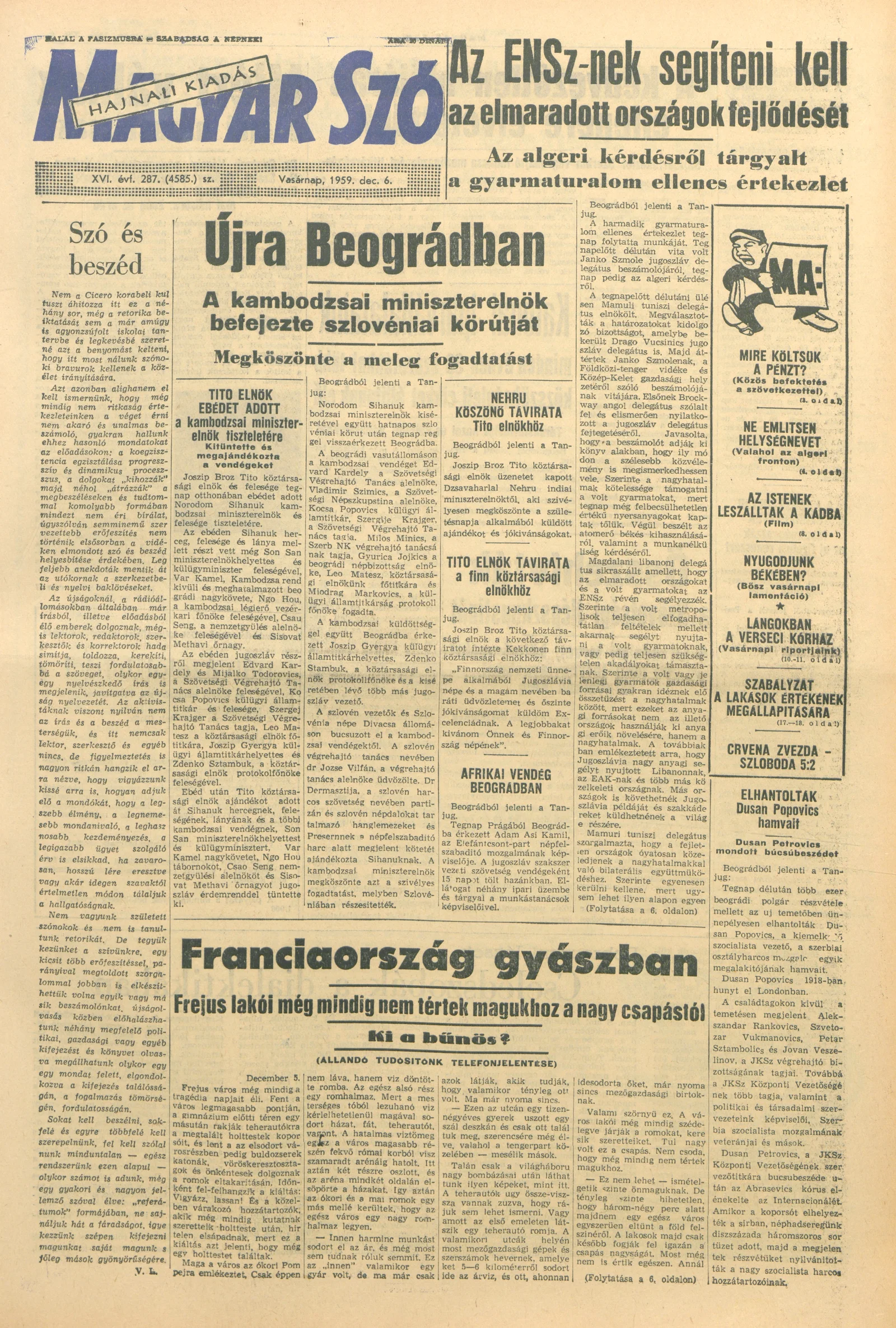 Magyar Szó, 16. évf. 1959. december 6. 287. sz. 1–20. oldal
