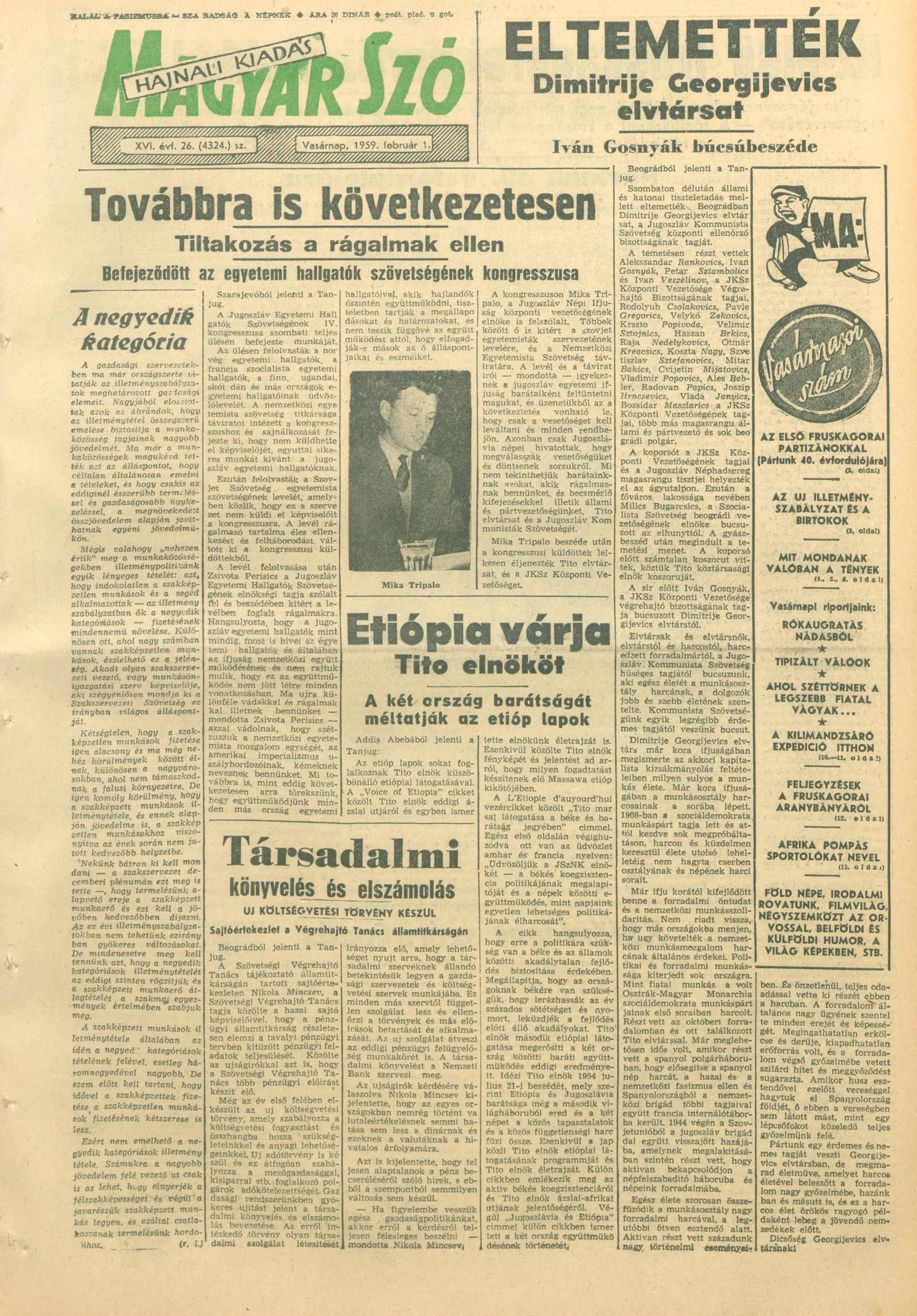 Magyar Szó, 16. évf. 1959. február 1. 26. sz. 1–24. oldal