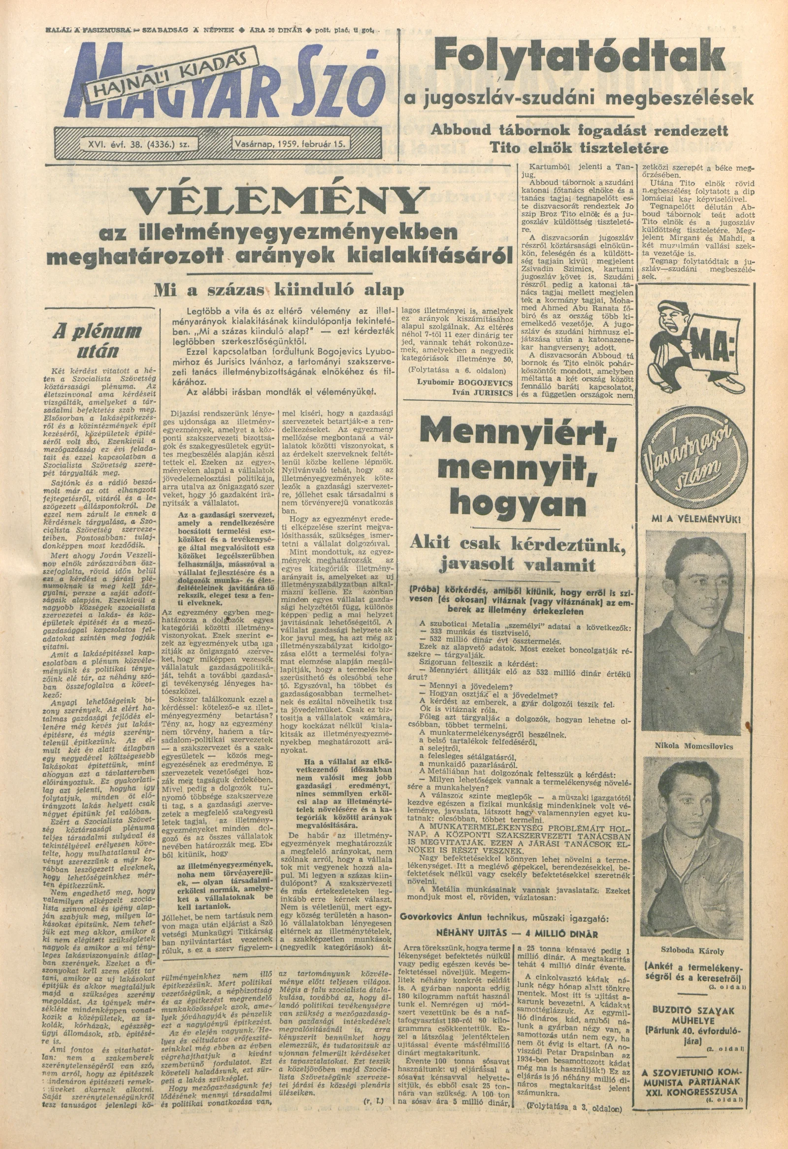 Magyar Szó, 16. évf. 1959. február 15. 38. sz. 1–22. oldal