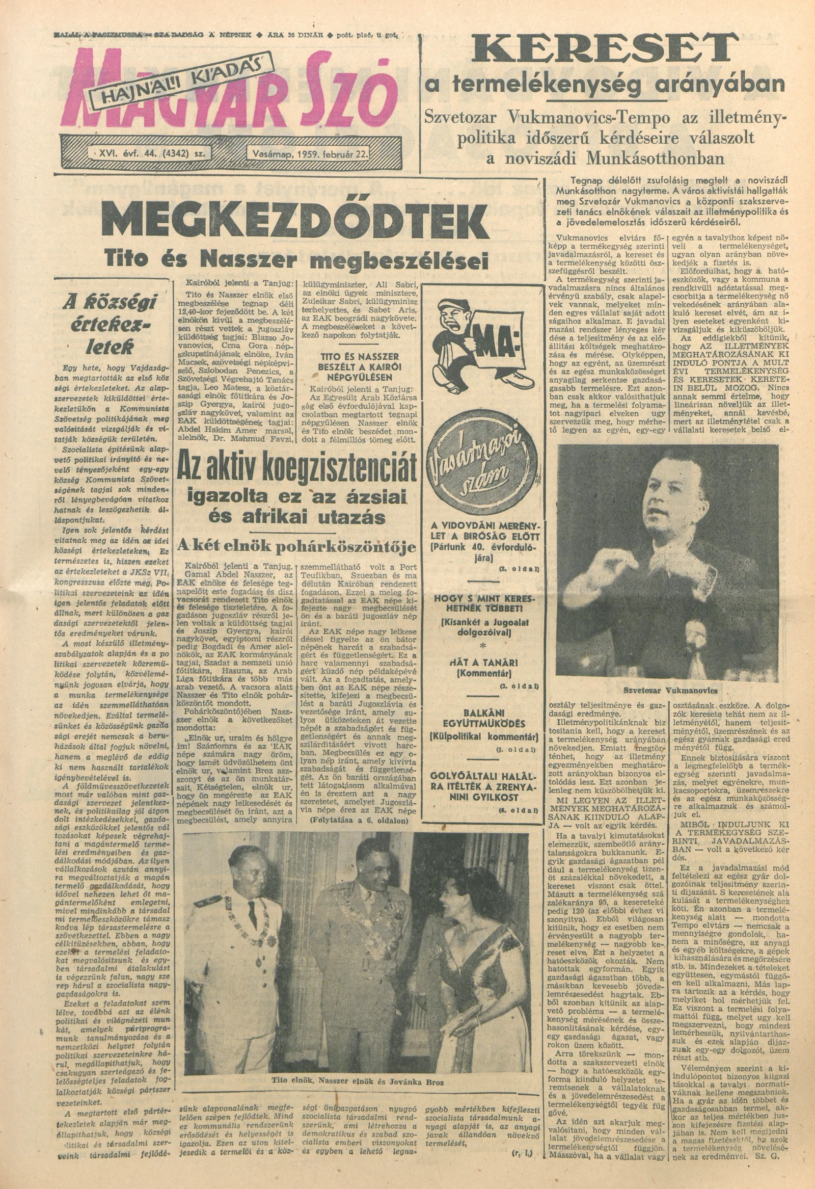 Magyar Szó, 16. évf. 1959. február 22. 44. sz. 1–22. oldal