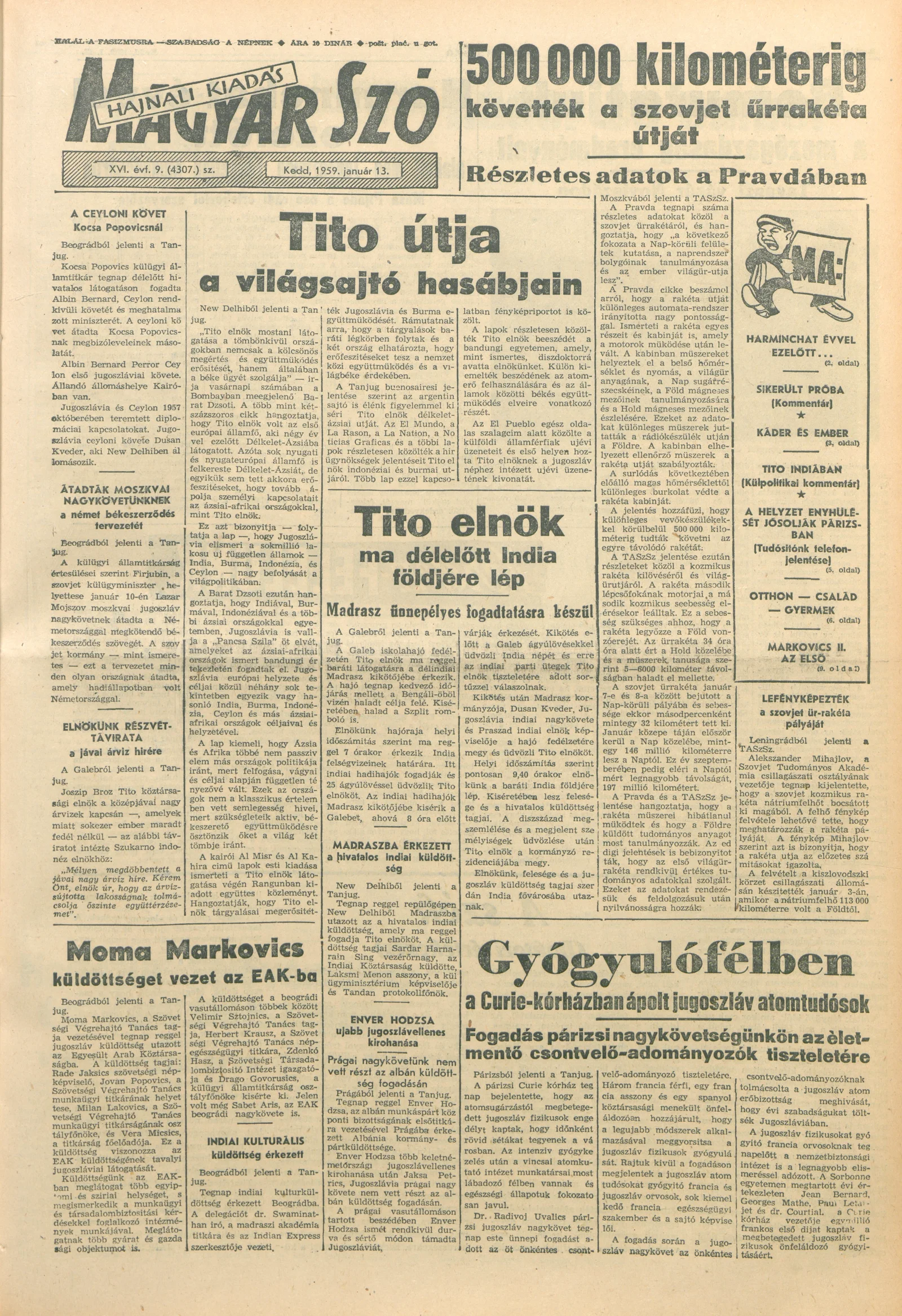 Magyar Szó, 16. évf. 1959. január 13. 9. sz. 1–16. oldal