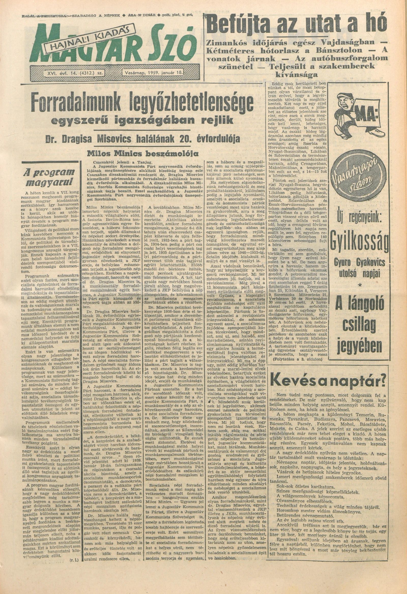 Magyar Szó, 16. évf. 1959. január 18. 14. sz. 1–22. oldal