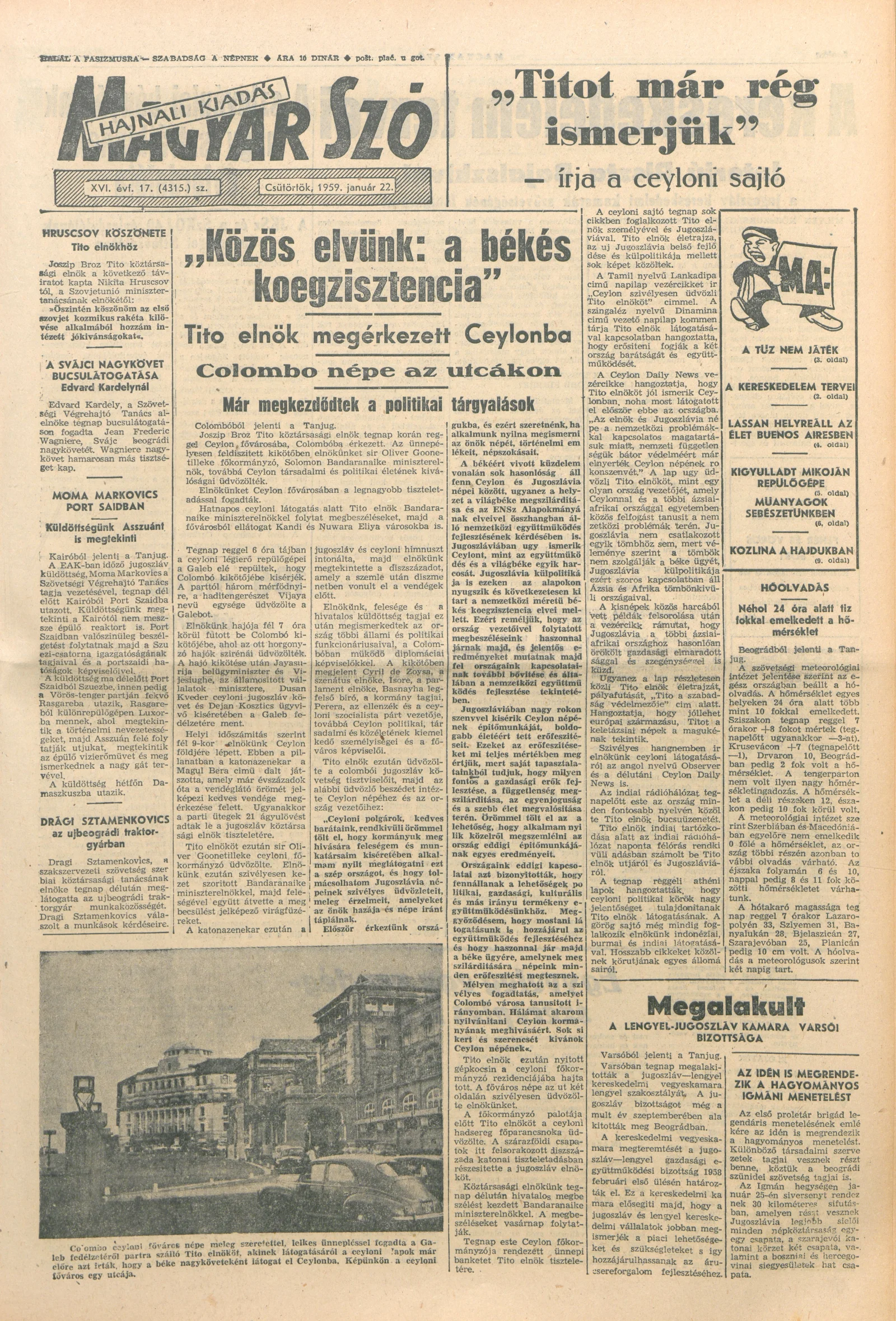 Magyar Szó, 16. évf. 1959. január 22. 17. sz. 1–16. oldal