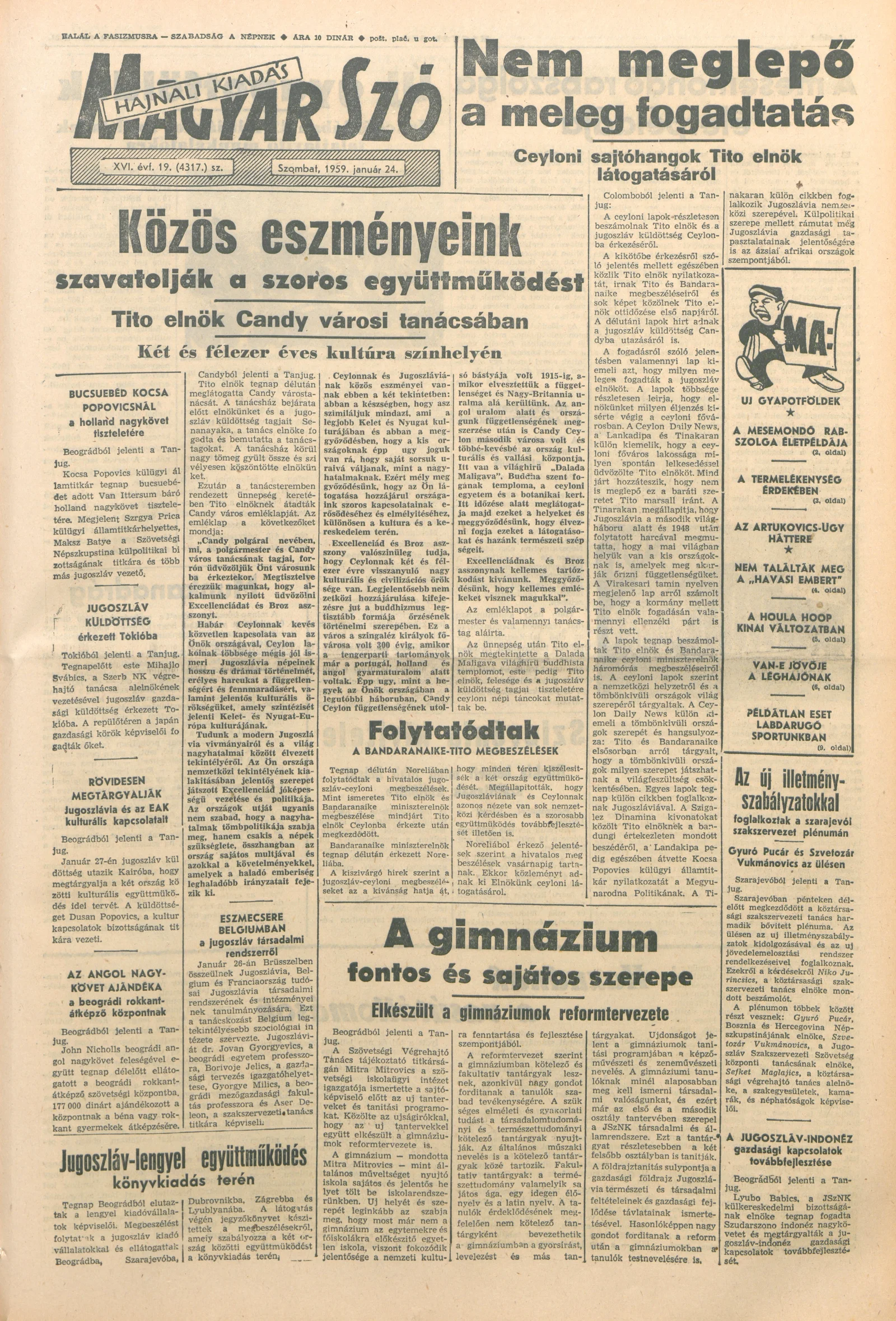 Magyar Szó, 16. évf. 1959. január 24. 19. sz. 1–18. oldal
