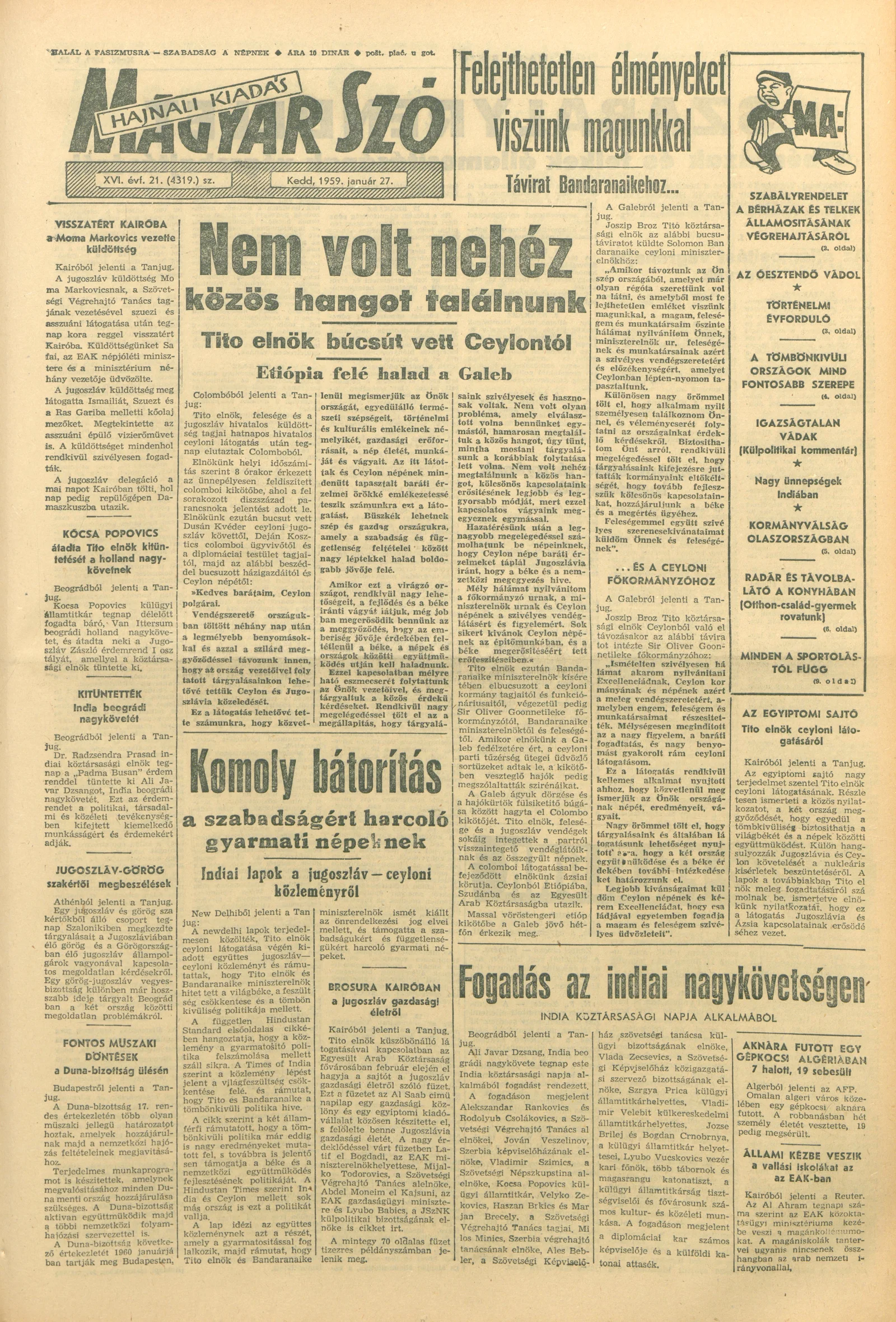 Magyar Szó, 16. évf. 1959. január 27. 21. sz. 1–18. oldal