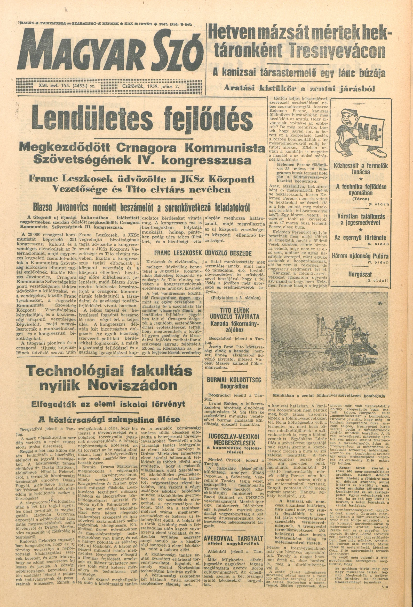 Magyar Szó, 16. évf. 1959. július 2. 155. sz. 1–22. oldal