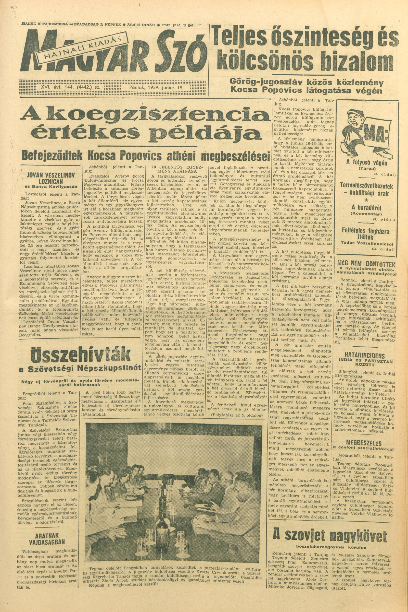 Magyar Szó, 16. évf. 1959. június 19. 144. sz. 1–20. oldal