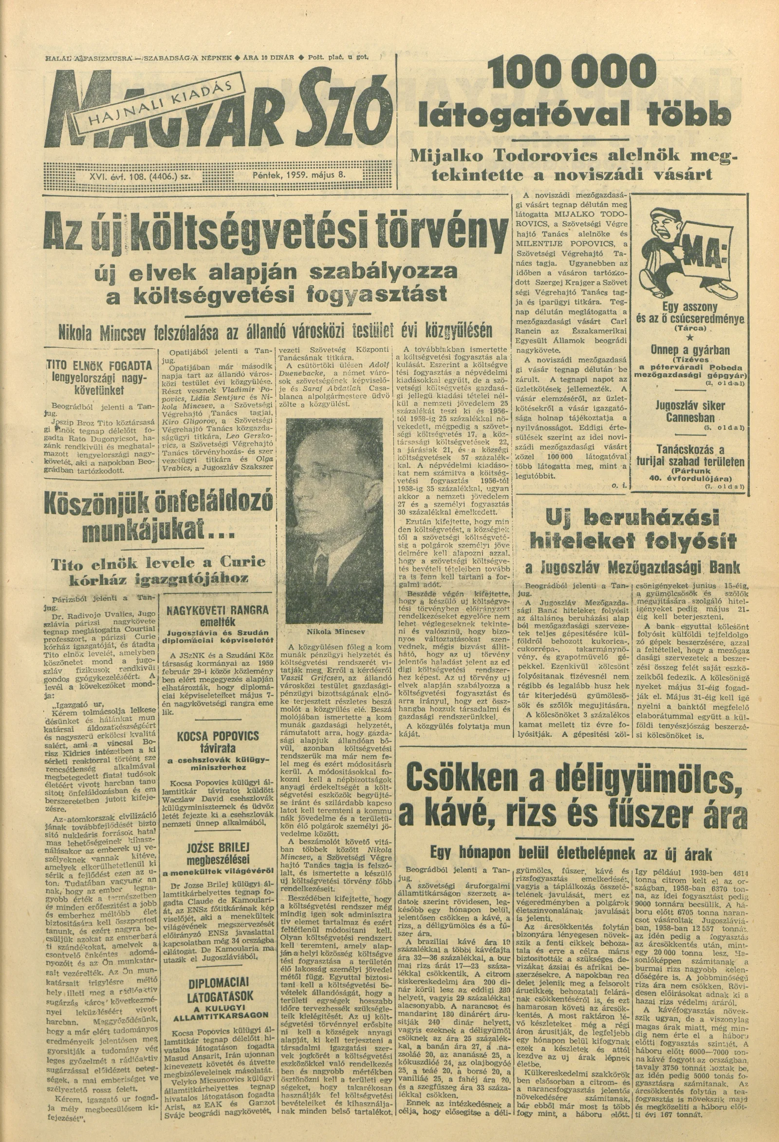 Magyar Szó, 16. évf. 1959. május 8. 108. sz. 1–20. oldal