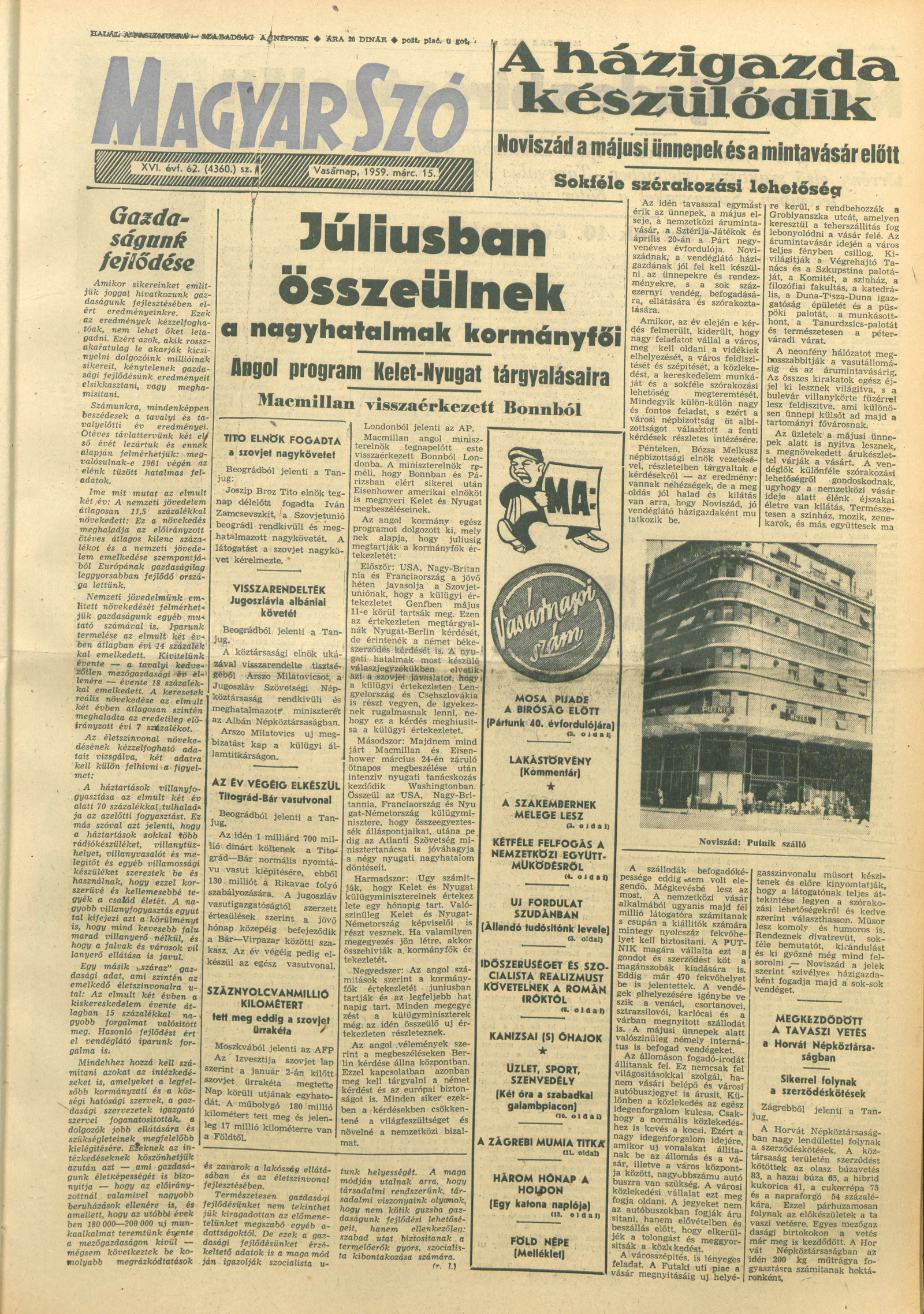 Magyar Szó, 16. évf. 1959. március 15. 62. sz. 1–26. oldal