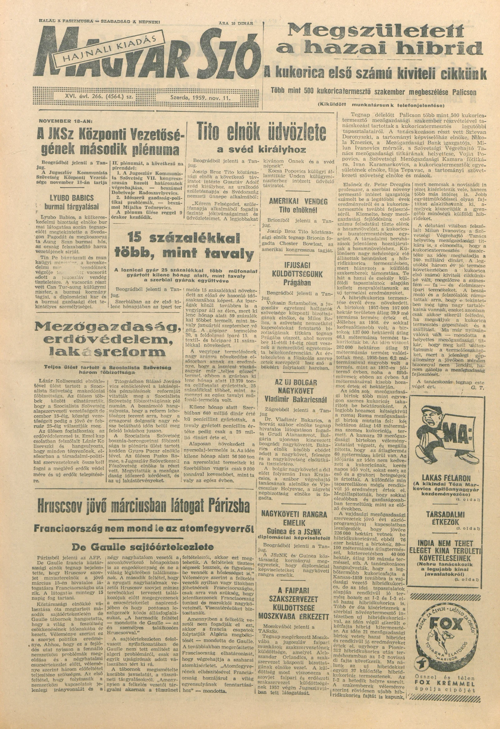 Magyar Szó, 16. évf. 1959. november 11. 266. sz. 1–20. oldal