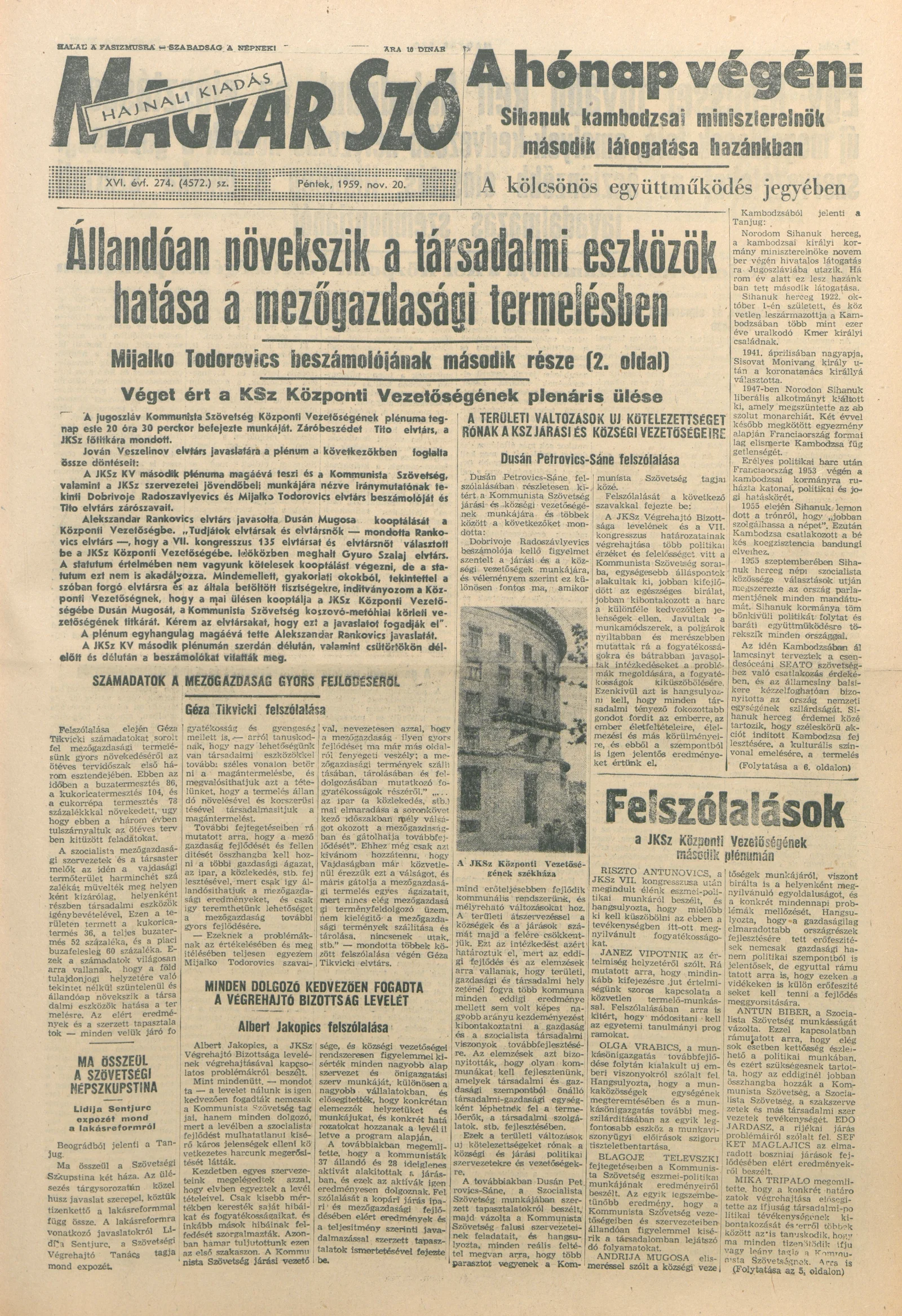Magyar Szó, 16. évf. 1959. november 20. 274. sz. 1–20. oldal